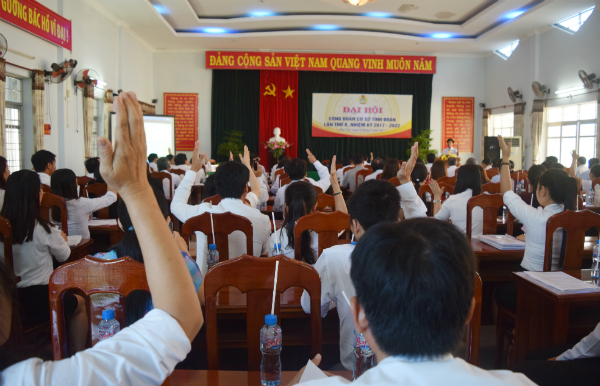 Các đại biểu biểu quyết các chỉ tiêu tại Đại hội.