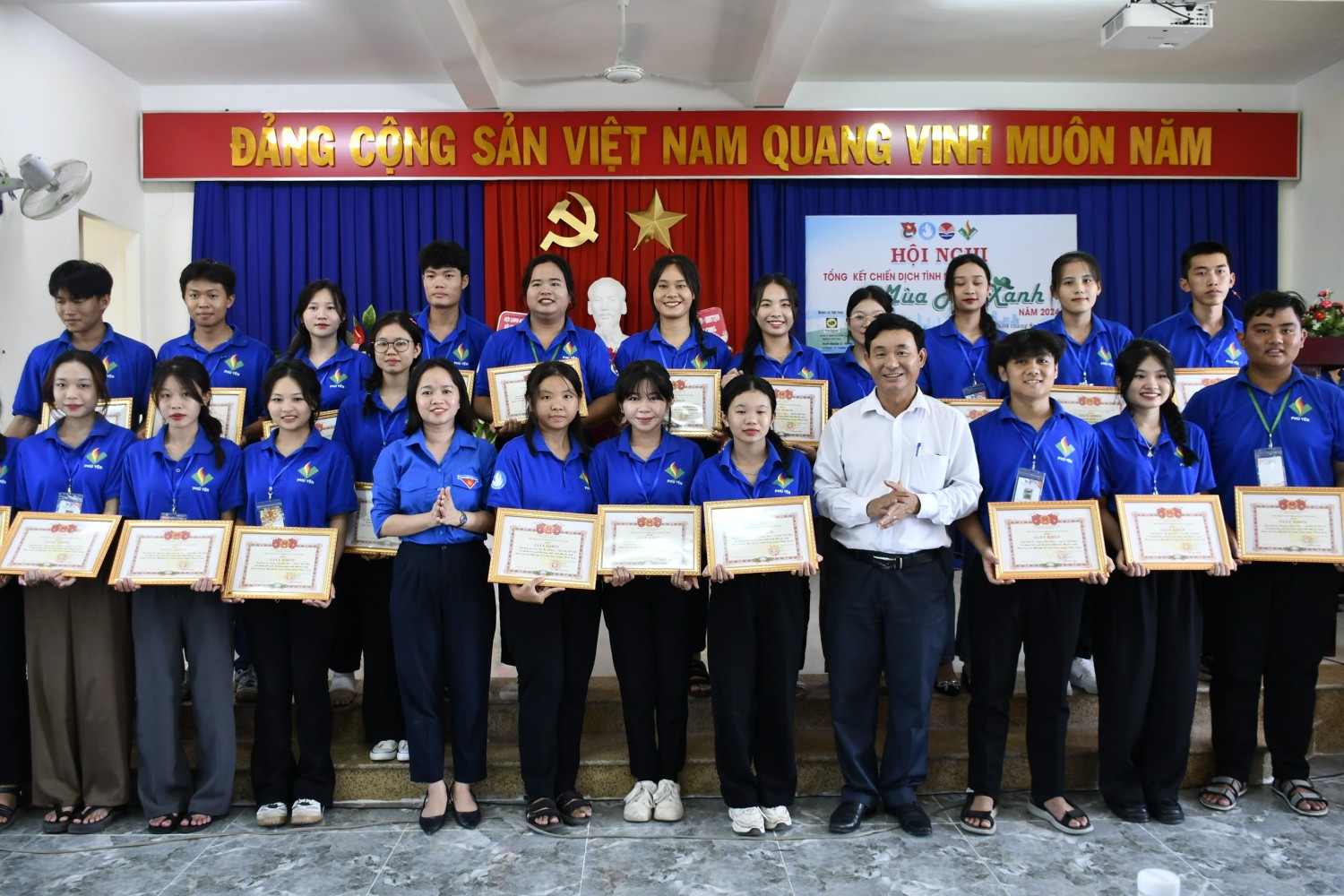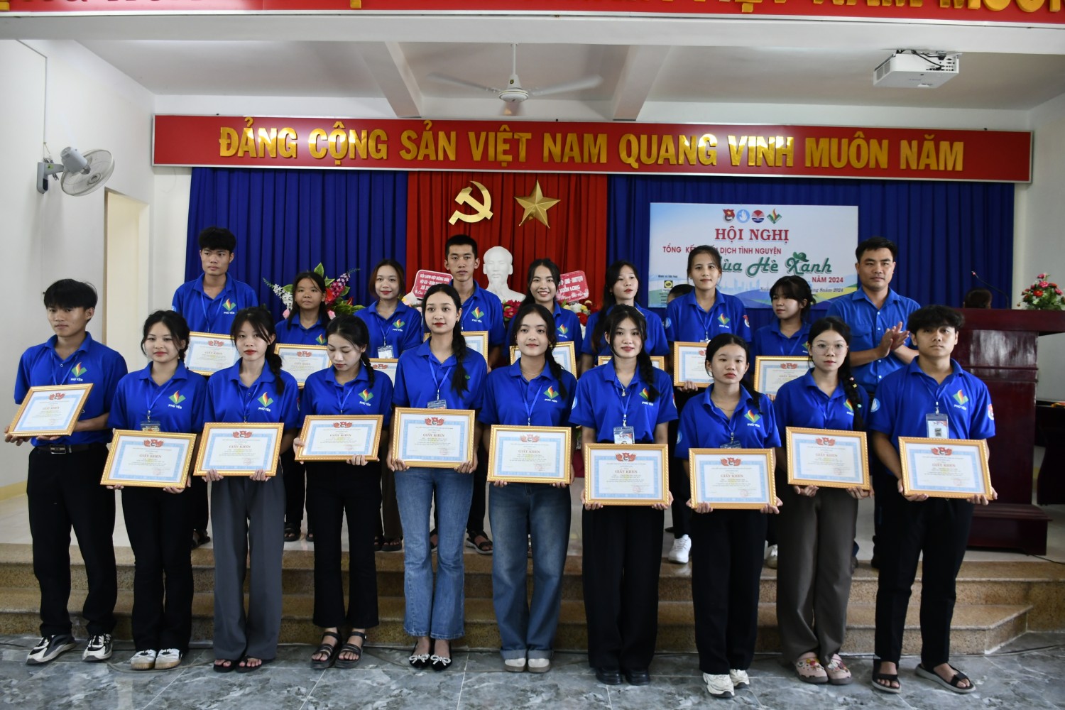 Lãnh đạo các đơn vị trao tặng giấy khen cho các cá nhân đã có thành tích xuất sắc trong Chiến dịch tình nguyện Mùa hè xanh năm 2024.