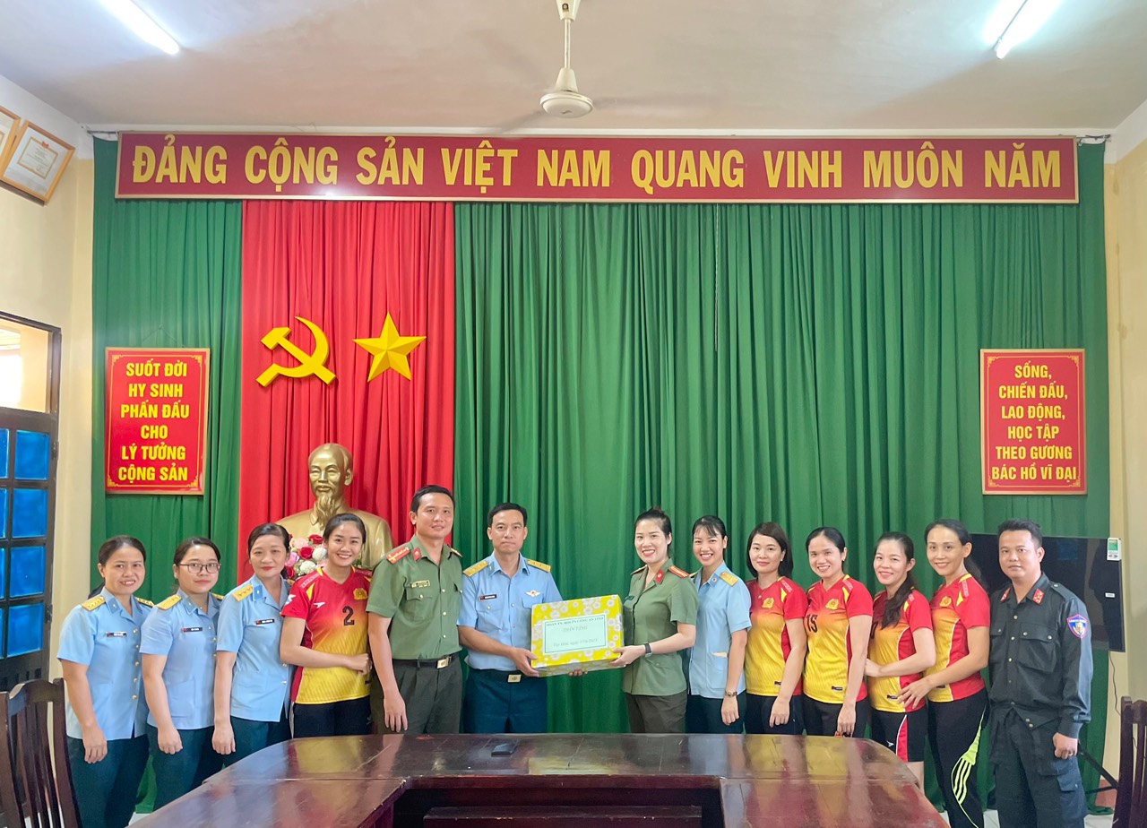 Hai đơn vị gặp mặt, tặng quà kỷ niệm trong buổi giao lưu.
