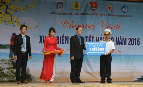 Tại chương trình, toàn thể cán bộ, giáo viên, viên chức, sinh viên toàn Trường Đại học Xây dựng Miền Trung, Hội Chữ Thập đỏ tỉnh, Trung tâm Hoạt động thanh thiếu nhi Phú Yên và đã nhiệt tình hưởng ứng, ký tên lên tấm thiệp lớn chúc Tết Bính Thân năm 2016 động viên quân, dân huyện đảo Trường Sa. Đồng thời, tham gia ủng hộ tặng quà Tết cho các chiến sỹ Vùng 4 Hải quân với tổng số 28 triệu đồng và 1.000 cuốn vở, trị giá 8 triệu đồng. Trong đó, Trường Đại học Xây dựng Miền Trung ủng hộ 20 triệu đồng; Ngân hàng Vietinbank chi nhánh Phú Yên ủng hộ 1.000 cuốn vở trị giá 8 triệu đồng; Hội chữ thập đỏ tỉnh ủng hộ 4 triệu đồng; Trung tâm Hoạt động thanh thiếu nhi Phú Yên ủng hộ 2 triệu đồng; Huyện Đoàn Phú Hòa ủng hộ 1 triệu đồng; Đoàn Trường Cao đẳng Công nghiệp Tuy Hòa ủng hộ 1 triệu đồng; Đoàn Trường Đại học Phú Yên ủng hộ 1 triệu đồng.