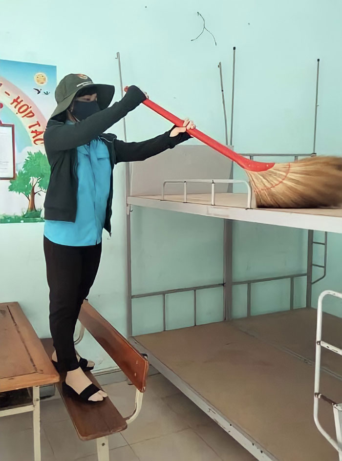 ĐVTN huyện Đồng Xuân dọn vệ sinh cơ sở cách ly phòng chống dịch COVID-19 tại Trường phổ thông Dân tộc nội trú huyện.