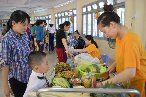 Nhiều món ăn hấp dẫn thu hút các em thiếu nhi.