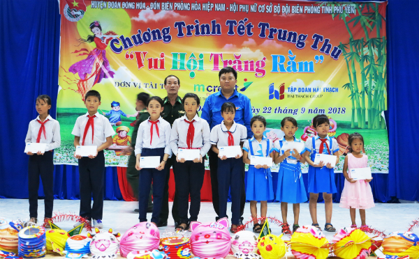 Trong đêm hội Trung thu, Huyện Đoàn Đông Hòa vận động các mạnh thường quân trao 30 suất học bổng, mỗi suất 300 nghìn đồng cho các em thiếu nhi khuyết tật, khó khăn vượt khó học giỏi. Ngoài ra, 400 em thiếu nhi tham gia đêm hội còn nhận được một phần quà gồm bánh Trung thu, lồng đèn (trị giá 50.000 đồng/suất). Tuy không có tiếng trống lân và thời tiết không thuận lợi nhưng những phần quà tuy giá trị không lớn, cùng với sự quan tâm của lãnh đạo các cấp đã động viên tinh thần cho con em vùng biển có một đêm trung thu ấm áp, giúp các em có thêm điều kiện để vui Tết Trung thu và vươn lên trong học tập.