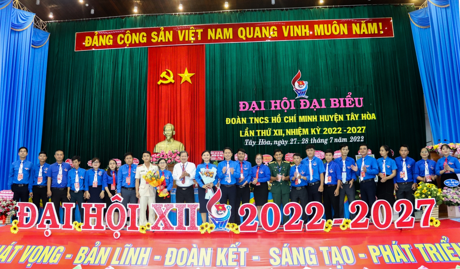 Thường trực Tỉnh Đoàn và Huyện ủy Tây Hòa tặng hoa chúc mừng Ban chấp hành Đoàn TNCS Hồ Chí Minh huyện Tây Hòa khóa XII, nhiệm kỳ 2022-2027.