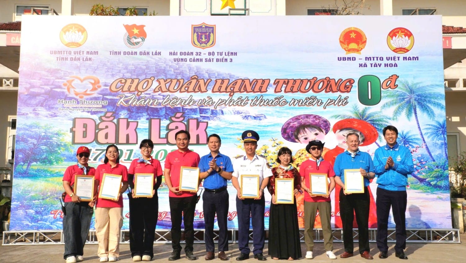 Nhân dịp Tết Nguyên đán Bính Ngọ 2026, sáng ngày 17/01/2026, tại xã Tây Hòa, tỉnh Đắk Lắk, Ủy ban Mặt trận Tổ quốc Việt Nam tỉnh Đắk Lắk, Tỉnh đoàn Đắk Lắk phối hợp với Hải đoàn 32 - Bộ Tư lệnh Vùng Cảnh sát biển 3, Hợp tác xã An Phú, Nhóm thiện nguyện Hạnh Thương và chính quyền địa phương xã Tây Hòa cùng các đơn vị đồng hành tổ chức Chương trình “Chợ Xuân Hạnh Thương 0 đồng” và khám bệnh và phát thuốc miễn phí dành cho hơn 4.000 người dân có hoàn cảnh khó khăn trên địa bàn các xã Tây Hòa, Hòa Thịnh, Hòa Mỹ, Phú Hòa 1, Sơn Thành và phường Đông Hòa, tỉnh Đắk Lắk.