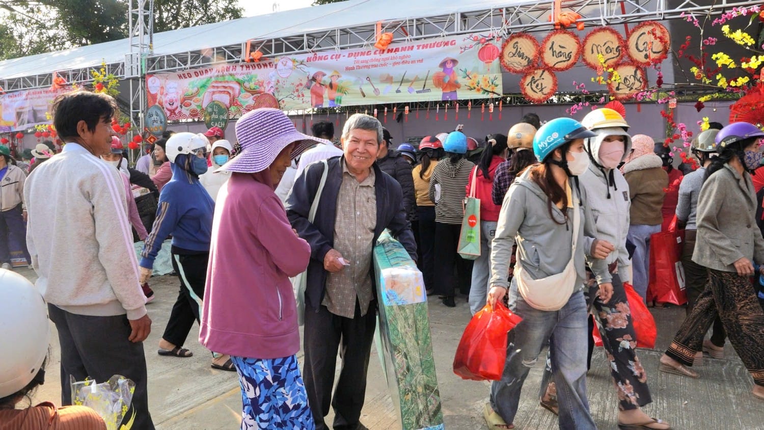 Người dân vui mừng khi nhận được nhiều phần quà ý nghĩa tại “Chợ Xuân Hạnh Thương 0 đồng”.