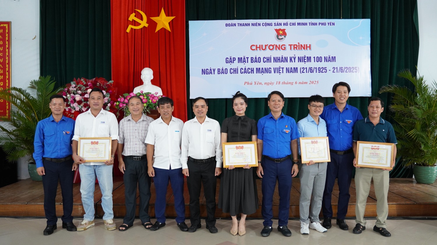 Nhâp dịp này, Ban Thường vụ Tỉnh Đoàn đã khen thưởng và tặng bằng khen cho 09 nhà báo, phóng viên, cộng tác viên có nhiều đóng góp trong công tác tuyên truyền về công tác Đoàn và phong trào thanh thiêu nhi tỉnh Phú Yên thời gian qua.