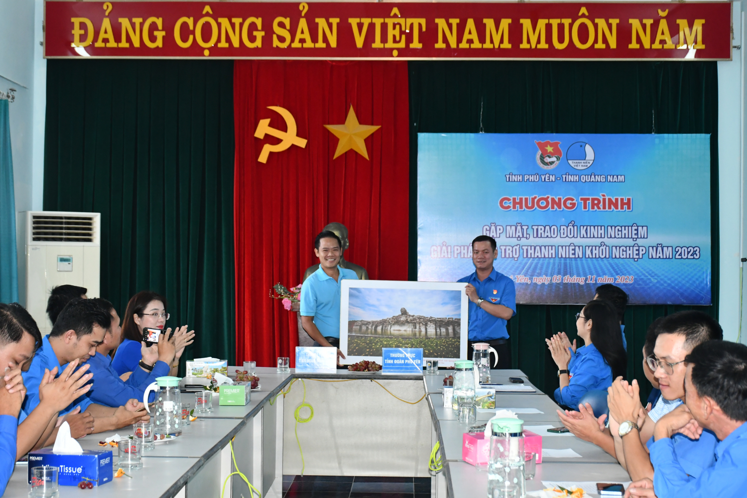 Tỉnh Đoàn, Hội LHTN Việt Nam tỉnh Quảng Nam tặng bức tranh lưu niệm cho Tỉnh Đoàn, Hội LHTN Việt Nam tỉnh Phú Yên.
