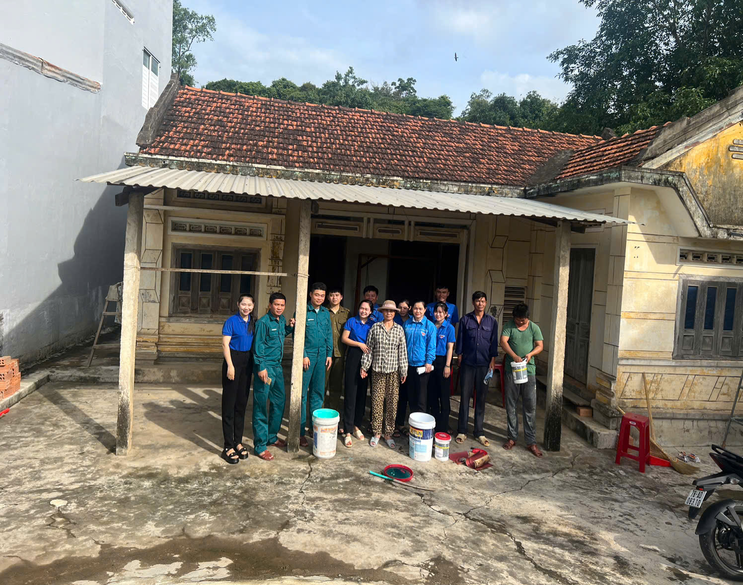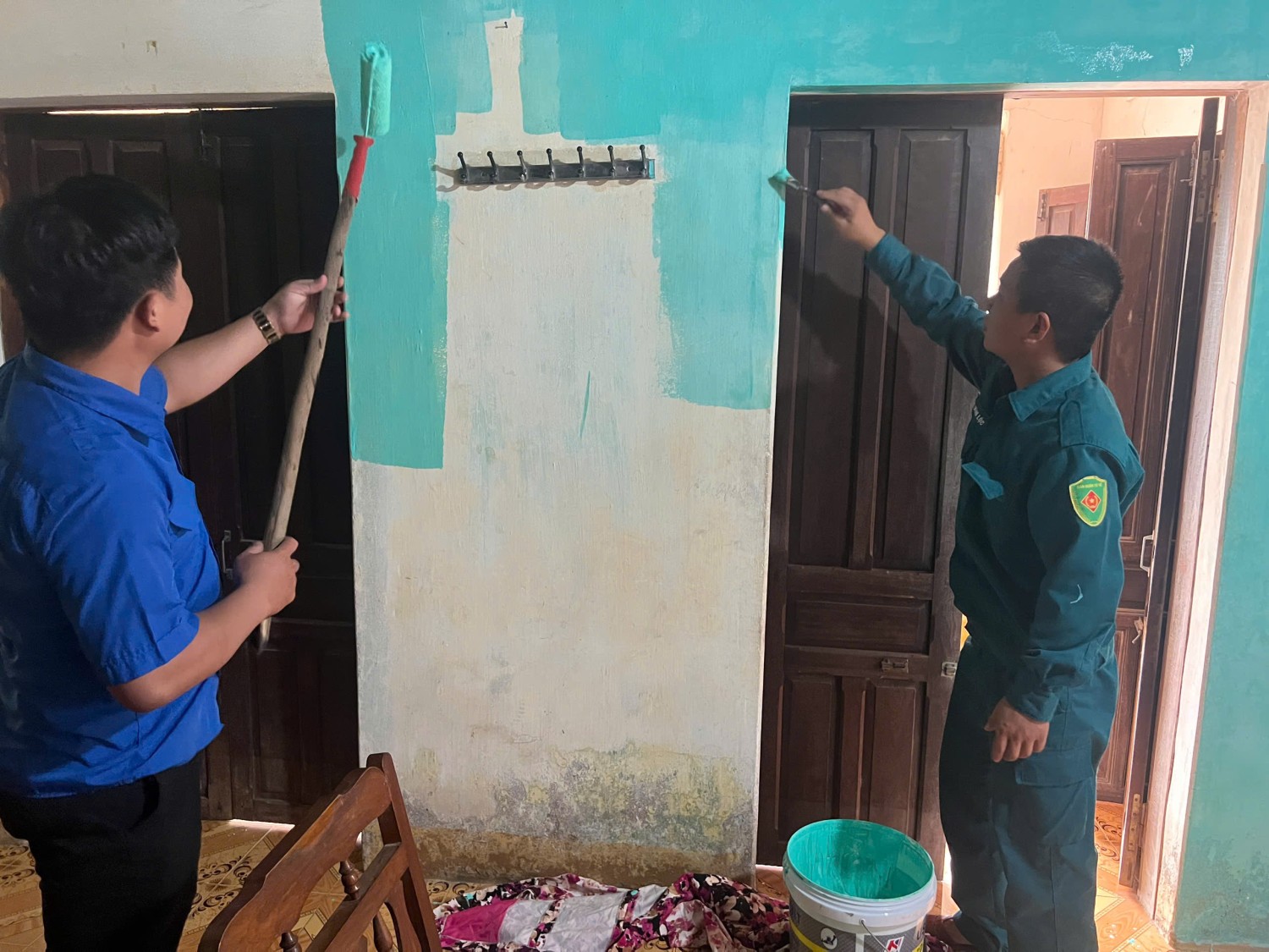 Đoàn viên, thanh niên tham gia tình nguyện sơn sửa, quét dọn lại nhà cho gia đình anh Nguyễn Văn Thức.