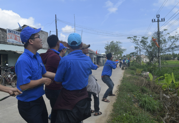Đoàn viên, thanh niên thi công công trình “Thắp sáng đường quê”.