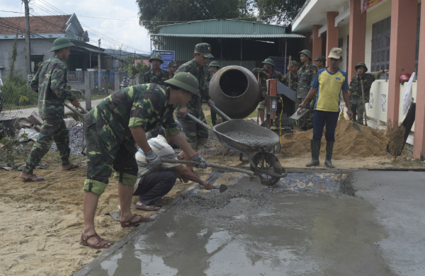 Bên cạnh đó, với tinh thần xung kích tình nguyện, Đoàn Thanh niên Bộ đội Biên phòng, Bộ Chỉ huy Quân sự, Công an tỉnh phối hợp lực lượng thanh niên địa phương cùng chung sức tham gia đổ bê tông sân Nhà văn hóa thôn Định Phong, xã An Nghiệp. Sau 1 ngày thi công, toàn bộ phần sân của nhà văn hóa thôn Định Phong đã hoàn tất với diện tích là 200m2. Mặc khác, Đoàn Thanh niên Bộ Chỉ huy Quân sự tỉnh phối hợp với cán bộ, đoàn viên thanh niên xã An Nghiệp tham gia nạo vét và khơi thông dòng chảy tuyến kênh mươn nội đồng, với chiều dài 100m tại thôn Thế Hiên.