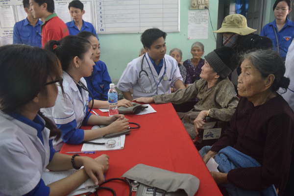 Tham gia khám, tư vấn sức khỏe và cấp phát thuốc miễn phí cho người dân.