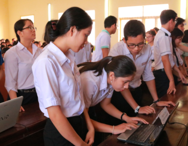 Các đội tham gia Cuộc thi trắc nghiệm tiếng Anh trực tuyến.