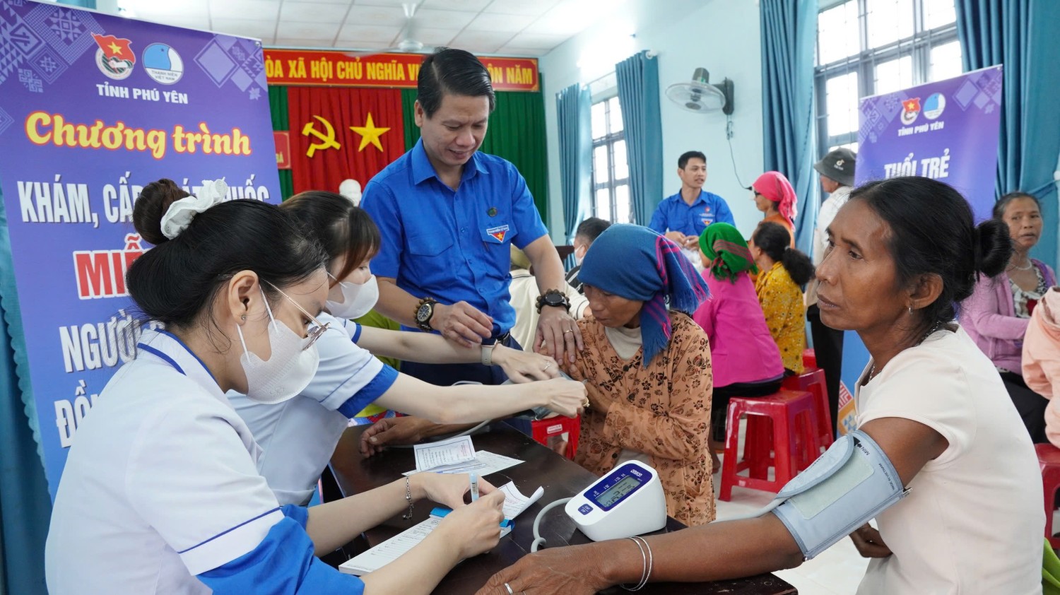 Đội ngũ y, bác sỹ trẻ tham gia khám, tư vấn sức khỏe cho người dân có hoàn cảnh khó khăn xã Ea Bá.