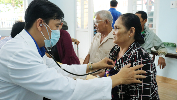 Y, bác sĩ trẻ khám bệnh cho người dân thôn Vũng Rô.