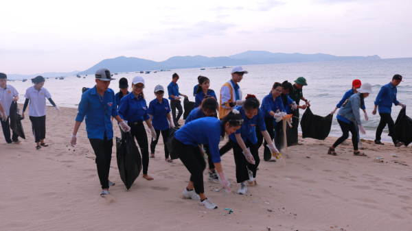 ĐVTN tham gia dọn vệ sinh bãi biển phường Xuân Đài.