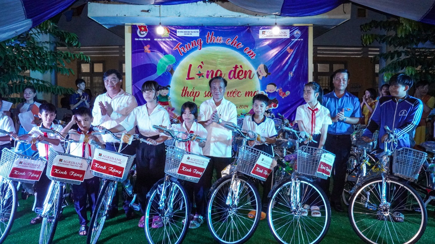 Dịp này, được sự hỗ trợ của các doanh nghiệp và cá nhân, Tỉnh Đoàn, Hội đồng Đội tỉnh đã trao tặng 60 xe đạp “Tiếp bước cho em đến trường” cho học sinh, thiếu nhi có hoàn cảnh khó khăn vươn lên trong học tập trên địa bàn xã Xuân Lãnh (trong đó, Ngân hàng Nông nghiệp và Phát triển nông thôn Việt Nam chi nhánh tỉnh Phú Yên hỗ trợ 10 chiếc xe đạp); trao tặng 300 suất quà trung thu gồm lồng đèn, bánh kẹo, sữa… cho các em thiếu nhi.