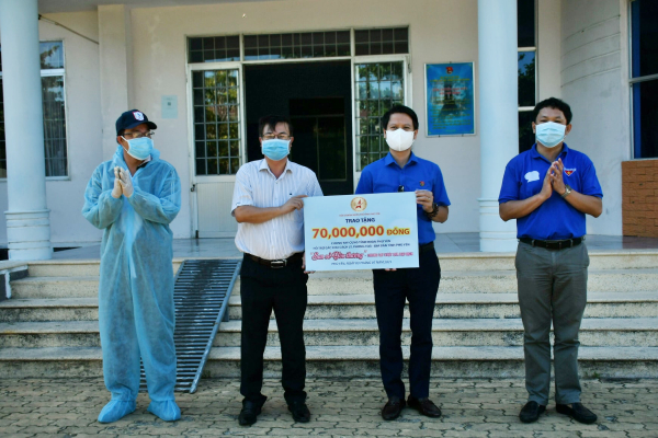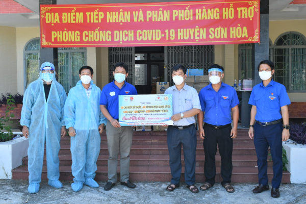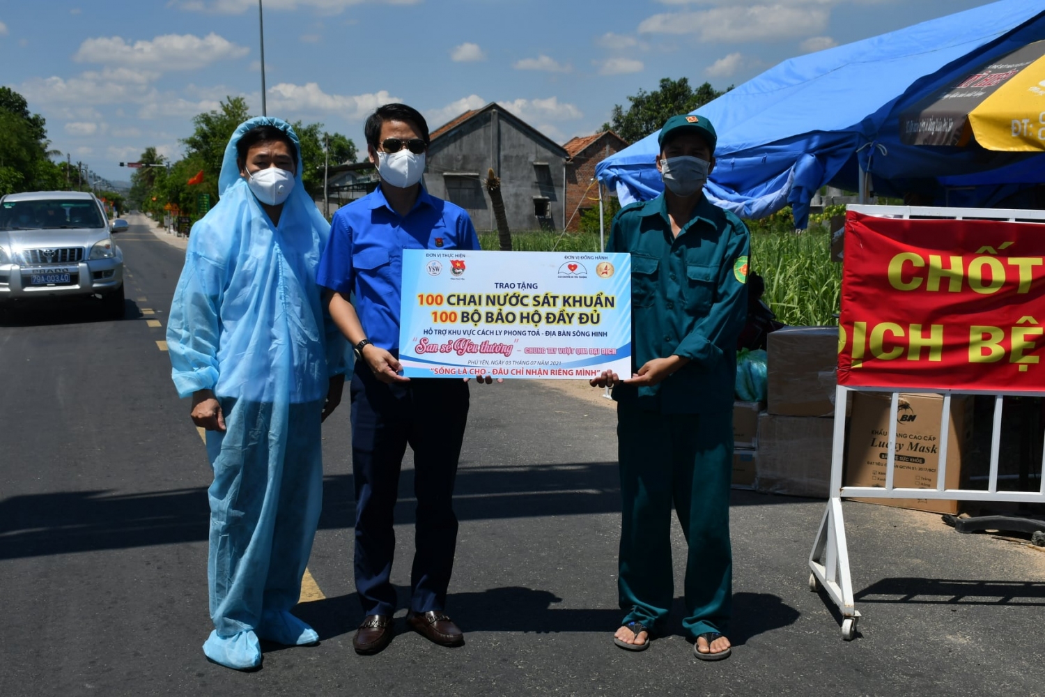 Theo đó, đoàn đã trao tặng 200 chai nước sát khuẩn 330ml, 500 bộ trang phục bảo hộ y tế phòng, chống dịch Covid-19, 1.000kg gạo, 1.200 sữa họp, 2.500 khẩu trang y tế hỗ trợ khu vực cách ly- phong tỏa trên địa bàn huyện Sơn Hòa; trao tặng nhu yếu phẩm và 1.000 khẩu trang y tế hỗ trợ lực lượng chức năng đang làm nhiệm vụ phòng chống dịch Covid-19 trên địa bàn xã Hòa Kiến (TP. Tuy Hòa); 3.000 suất cơm hỗ trợ khu vực cách ly - phong tỏa trên địa bàn tỉnh Phú Yên; trao tặng 150 bộ trang phục bảo hộ y tế phòng, chống dịch Covid-19, 200 chai nước sát khuẩn 330ml, 300 mùng ngủ, 1.200 sữa họp, 2.500 khẩu trang y tế, 15.000 gói mì hỗ trợ khu vực cách ly - phong tỏa trên địa bàn huyện Tuy An.