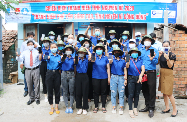 Thường trực Tỉnh Đoàn, Đảng ủy trường, Huyện Đoàn Tây Hòa cùng các chiến sĩ tình nguyện khánh thành nhà nhân ái và tuyên truyền, cài đặt ứng dụng Bluezone.
