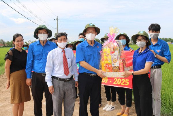 Phó Bí thư Tỉnh Đoàn, Chủ tịch Hội Sinh viên tỉnh Trần Minh Trí tặng quà, động viên các chiến sĩ tình nguyện.