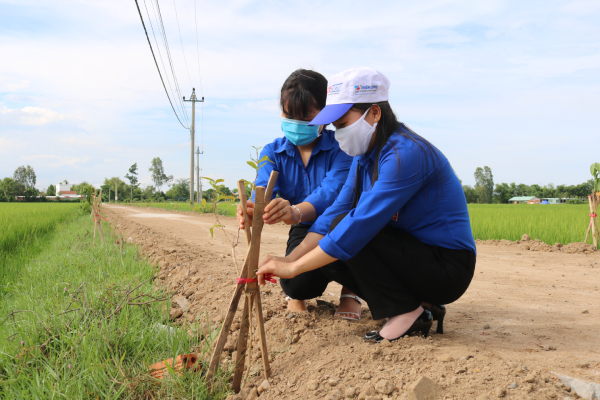 ĐVTN tham gia trồng cây Mằng Lăng tại tuyến đường thôn Phú Diễn Trong.