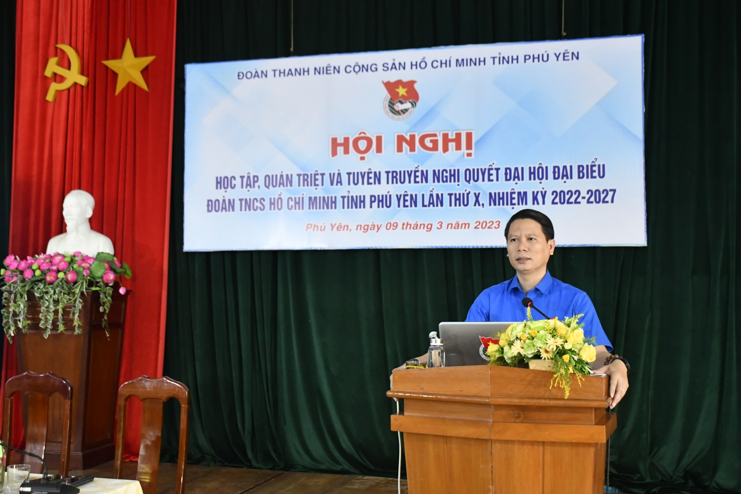 Đồng chí Lương Minh Tùng - Ủy viên Ban Chấp hành Trung ương Đoàn, Bí thư Tỉnh Đoàn, Chủ tịch Hội LHTN Việt Nam tỉnh quán triệt một số nội dung cơ bản Nghị quyết Đại hội đại biểu Đoàn TNCS Hồ Chí Minh tỉnh Phú Yên lần thứ X.