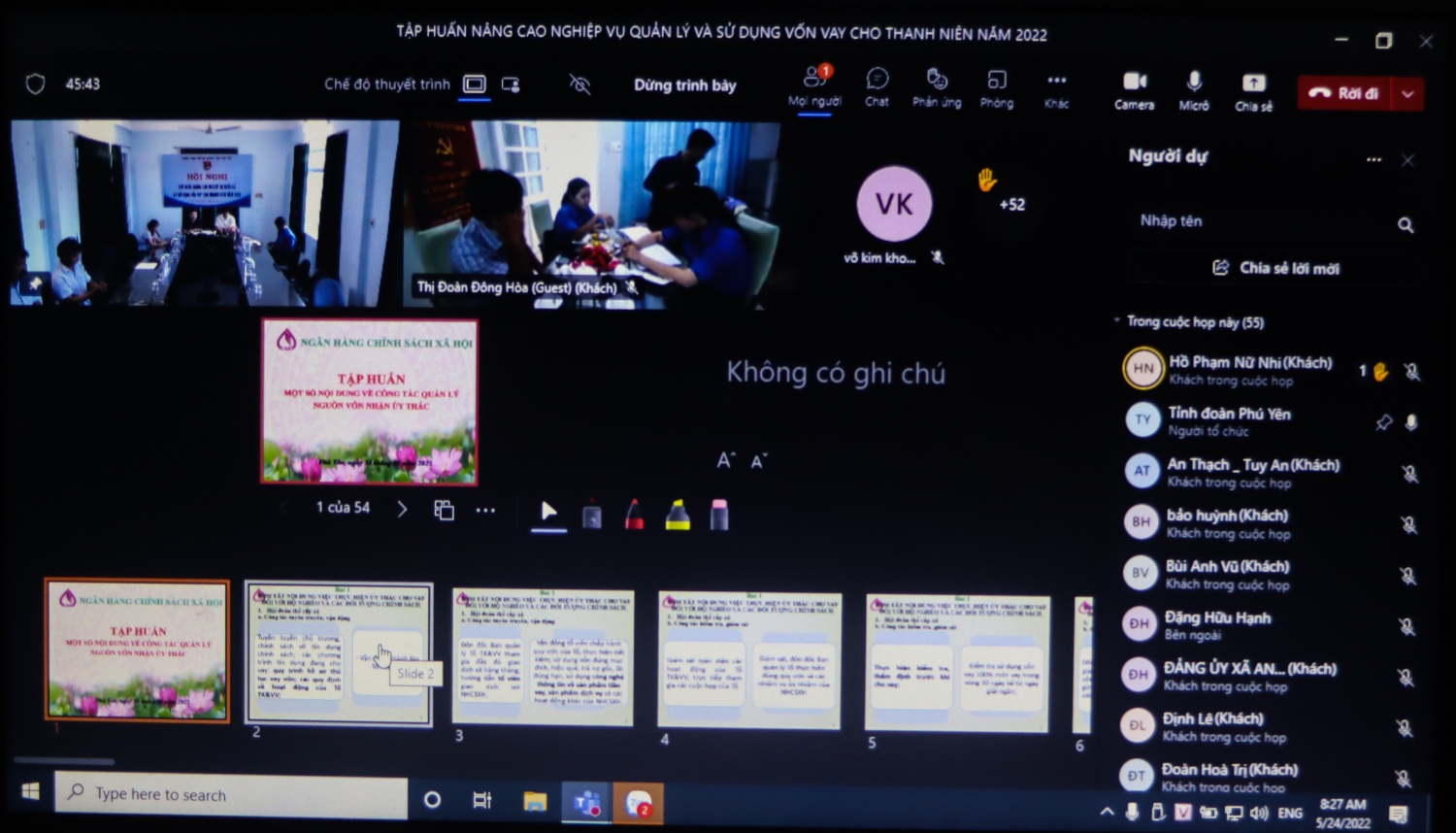 Tham dự hội nghị có đồng chí Lương Minh Tùng - Phó Bí thư Tỉnh Đoàn, Chủ tịch Hội LHTN Việt Nam tỉnh; lãnh đạo Ngân hàng Chính sách Xã hội chi nhánh Phú Yên; các đồng chí trong Ban Thường vụ, lãnh đạo các Ban Tỉnh Đoàn; Thường trực các Huyện, Thị, Thành Đoàn và 205 cán bộ Đoàn các cấp, Tổ trưởng các Tổ Tiết kiệm và Vay vốn thanh niên, đoàn viên, thanh niên trên địa bàn tỉnh.