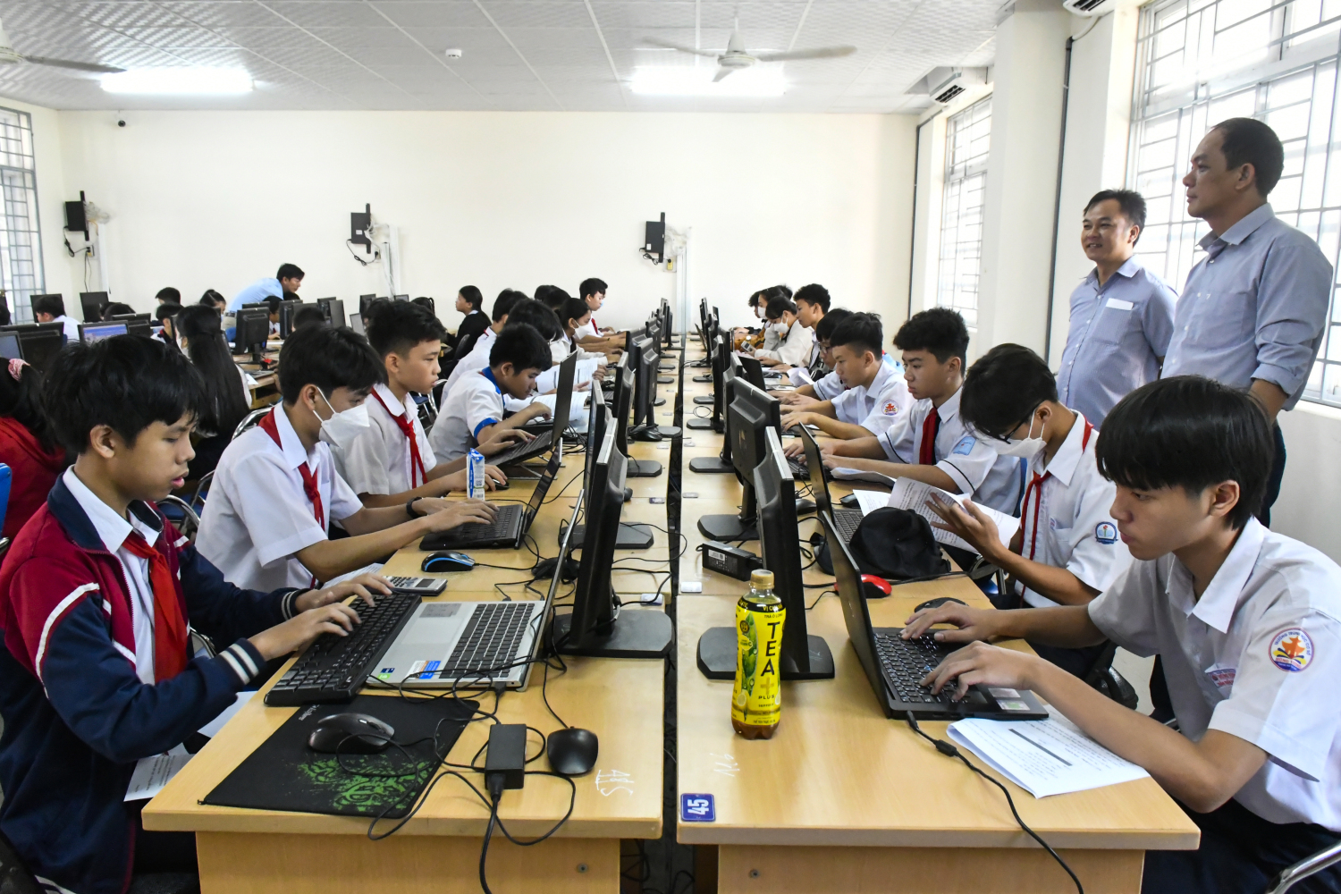 Các thí sinh tham gia thi Kỹ năng lập trình trên máy tính.