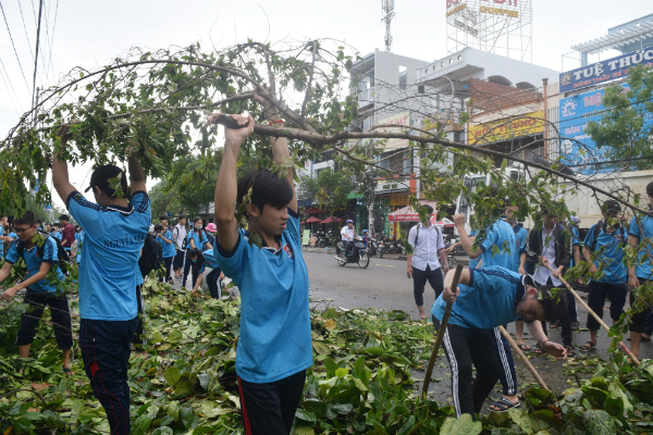 Các lực lượng tình nguyện của các đơn vị được trang bị những dụng cụ cần thiết như: rựa, chổi, cuốc, cào cỏ và một số dụng cụ khác để tham gia thu gom, xử lý các rác thải, các cành cây xanh bị ngã đổ tất cả các tuyến đường trên địa bàn Thành phố Tuy Hòa như: Độc Lập, Lê Duẫn, Nguyễn Huệ, Quảng trường ¼, Phan Lưu Thanh, Điện Biên Phủ, Nguyễn Hữu Thọ, Trường Chinh, Duy Tân…
