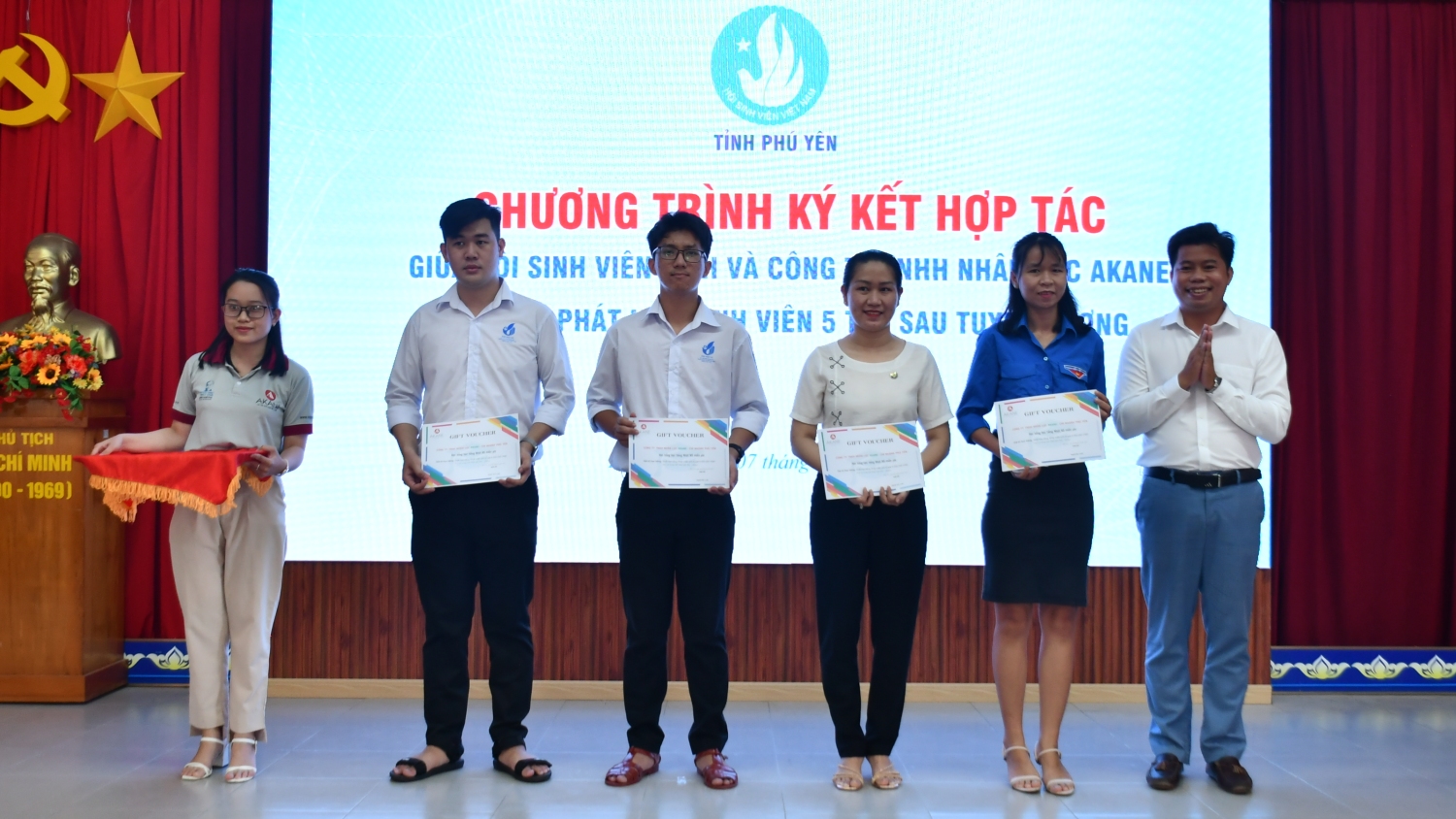 Dịp này, Công ty TNHH Nhân lực AKANE - Chi nhánh Phú Yên đã trao 10 suất học bổng cho các sinh viên đạt danh hiệu “Sinh viên 5 tốt” có hoàn cảnh khó khăn trên địa bàn tỉnh Phú Yên.