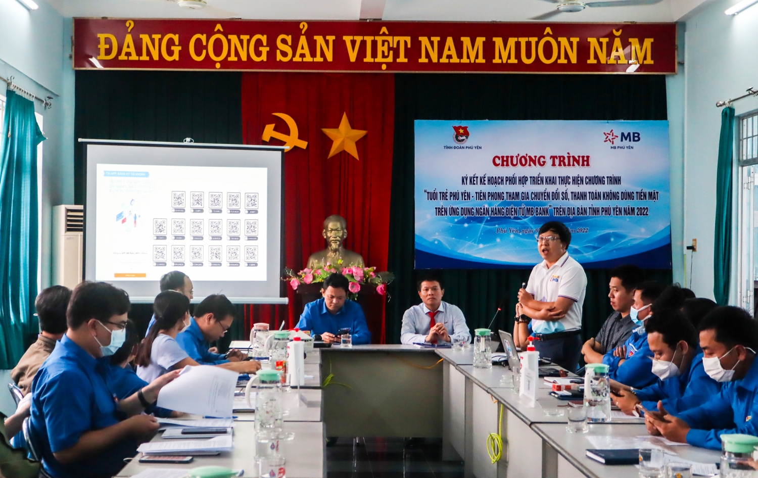 Tại chương trình hai đơn vị đã thống nhất ký kết Kế hoạch phối hợp triển khai thực hiện chương trình “Tuổi trẻ Phú Yên - Tiên phong tham gia chuyển đổi số, thanh toán không dùng tiền mặt trên ứng dụng Ngân hàng điện tử MB Bank” trên địa bàn tỉnh Phú Yên năm 2022. Theo kế hoạch, hai đơn vị đã thành lập Ban Chỉ đạo chương trình; thực hiện tiến độ triển khai thành 02 giai đoạn: giai đoạn 1 từ ngày 08/4 đến ngày 09/5/2022 và giai đoạn 2 từ ngày 10/5/2022 đến ngày 30/6/2022. Trong đó tập trung hướng dẫn cán bộ, đoàn viên, thanh niên cài đặt, đăng ký tài khoản, sử dụng ứng dụng Ngân hàng điện tử (App MB Bank) trên các thiết bị di động thông minh; Đoàn thanh niên các cấp và Ngân hàng Quân đội (MB Bank) - Chi nhánh Phú Yên phối hợp triển khai có hiệu quả để xây dựng nguồn vốn thực hiện công trình, phần việc thanh niên trên địa bàn tỉnh; tạo nguồn lực hỗ trợ các địa phương, đơn vị tổ chức các hoạt động phong trào góp phần nâng cao chất lượng công tác Đoàn và phong trào thanh thiếu nhi tại cơ sở. Phấn đấu giai đoạn 1 sẽ tập trung tại 55 xã, phường, thị trấn trên địa bàn tỉnh, thực hiện cài đặt, kích hoạt từ 20.000 đến 25.000 App MB Bank; giai đoạn 2 sẽ triển khai thực hiện trên tất cả các xã, phường, thị trấn và các đơn vị trực thuộc còn lại.