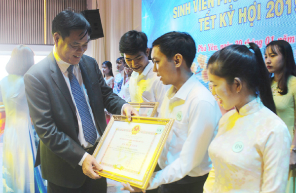 Phó Chủ tịch UBND tỉnh Phan Đình Phùng trao bằng khen cho các sinh viên Phú Yên tiêu biểu.