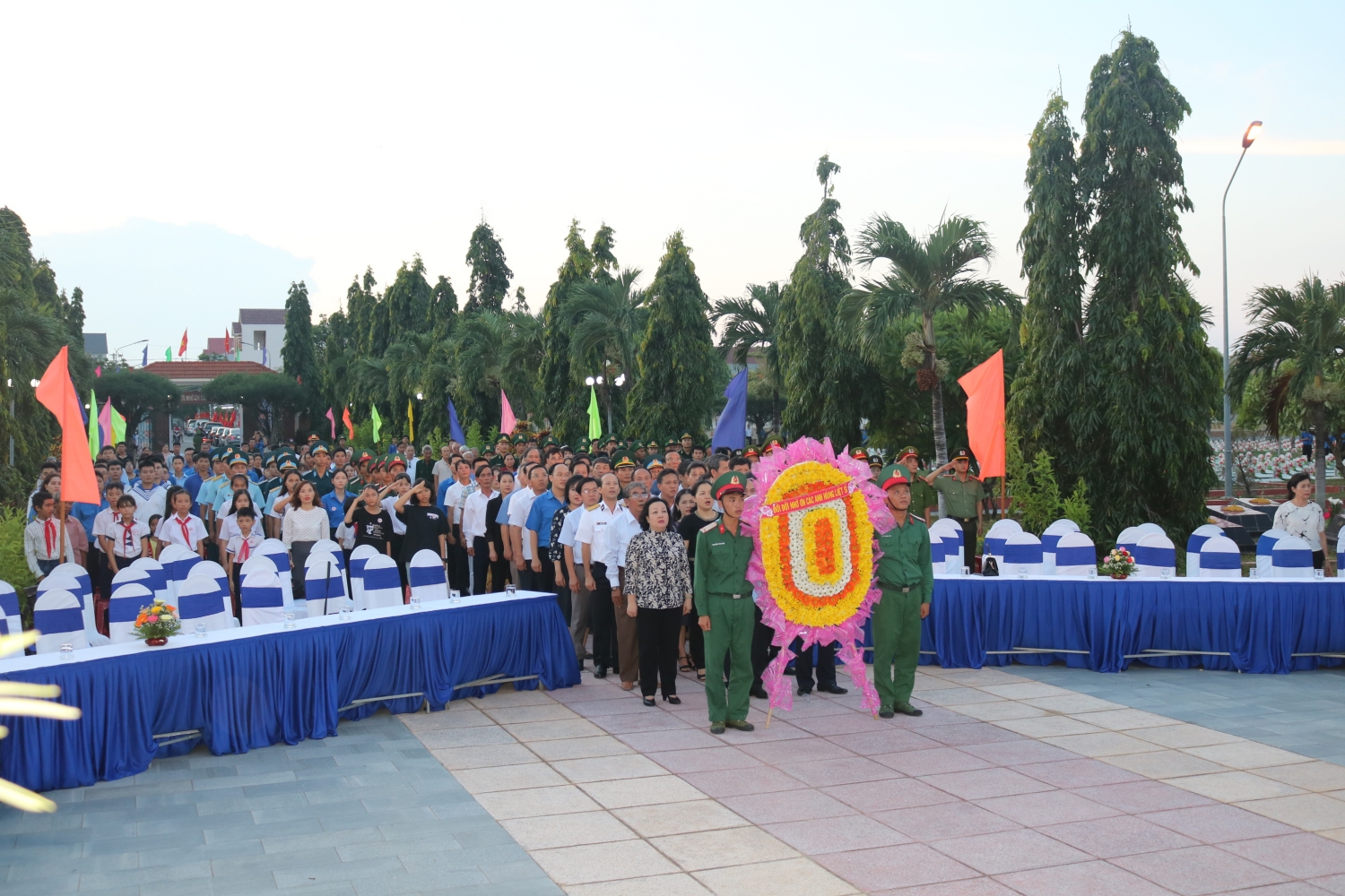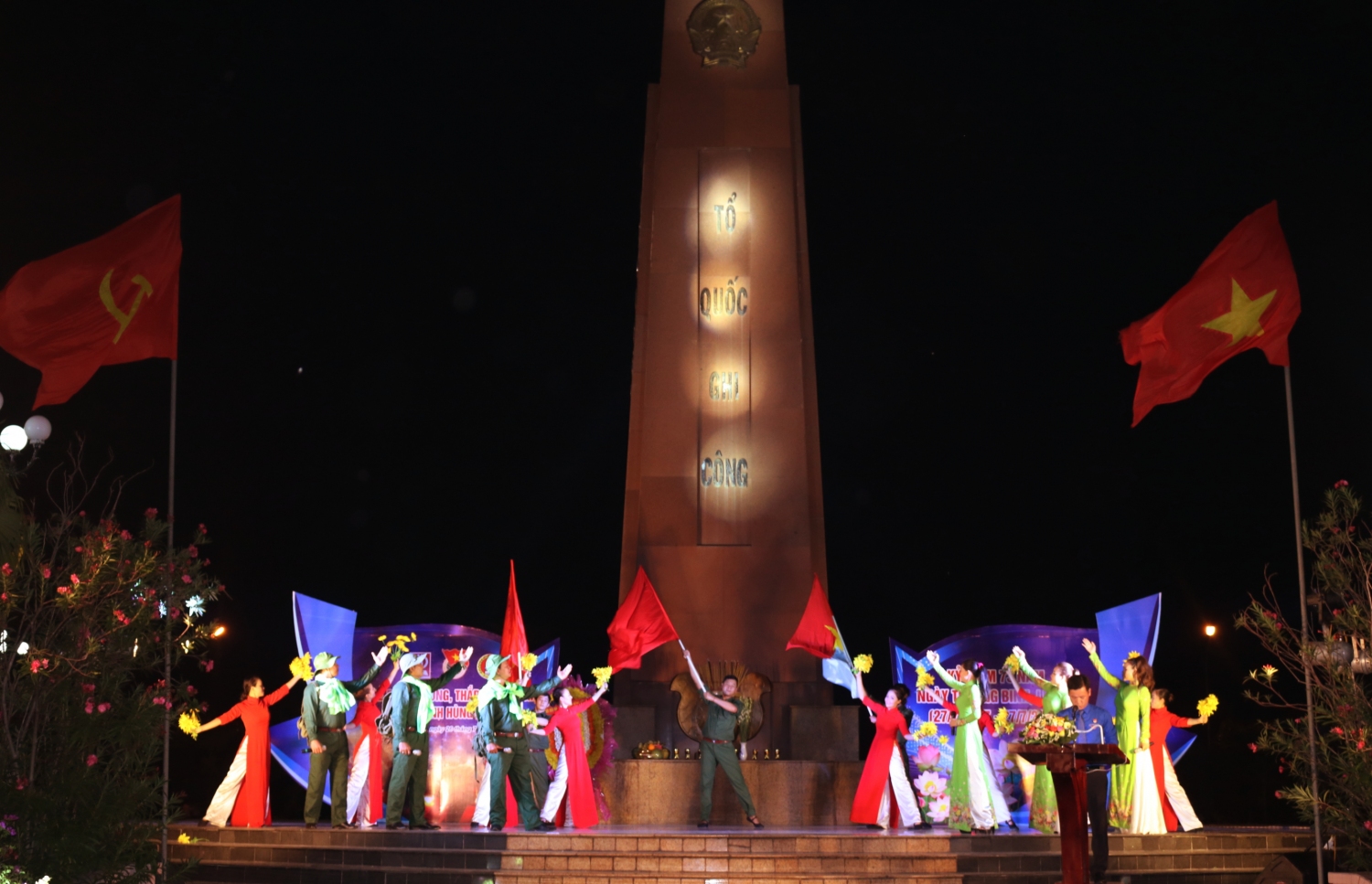 Mở đầu lễ thắp nến tri ân, các đồng chí lãnh đạo, đại biểu, đoàn viên, thanh niên và bà con Nhân dân đã dâng hoa, hương lên Đài tưởng niệm; đồng thời thắp sáng nến trên các phần mộ liệt sĩ. Tiếp theo đó, các ca sĩ, diễn viên đến từ Nhà hát Ca múa nhạc Sao Biển đã mang đến một chương trình nghệ thuật hào hùng, đầy xúc động tái hiện sự hy sinh anh dũng của những người lính bộ đội Cụ Hồ trong cuộc kháng chiến giành lại độc lập, tự do cho dân tộc.