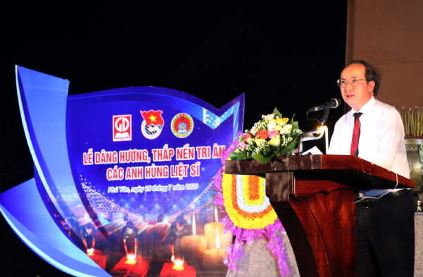 Thay mặt lãnh đạo tỉnh, Phó Chủ tịch UBND tỉnh Phan Đình Phùng phát biểu bày tỏ lòng biết ơn vô hạn và thành kính tưởng nhớ các bậc cách mạng tiền bối, các anh hùng liệt sĩ, đồng chí, đồng bào đã anh dũng hy sinh vì sự nghiệp cách mạng, vì nền độc lập, tự do của dân tộc. Điểm qua những hoạt động “Đền ơn đáp nghĩa” mà Đảng bộ, chính quyền, MTTQ, các tổ chức, doanh nghiệp trong tỉnh đã làm được trong thời gian qua, Phó Chủ tịch UBND tỉnh cho rằng vẫn còn không ít gia đình chính sách cuộc sống còn khó khăn; nhiều liệt sĩ chưa tìm được hài cốt để lại nỗi đau thương khắc khoải trong lòng người thân, đồng đội; những gia đình người có công rất cần sự chăm sóc, động viên cả về vật chất, lẫn tinh thần.