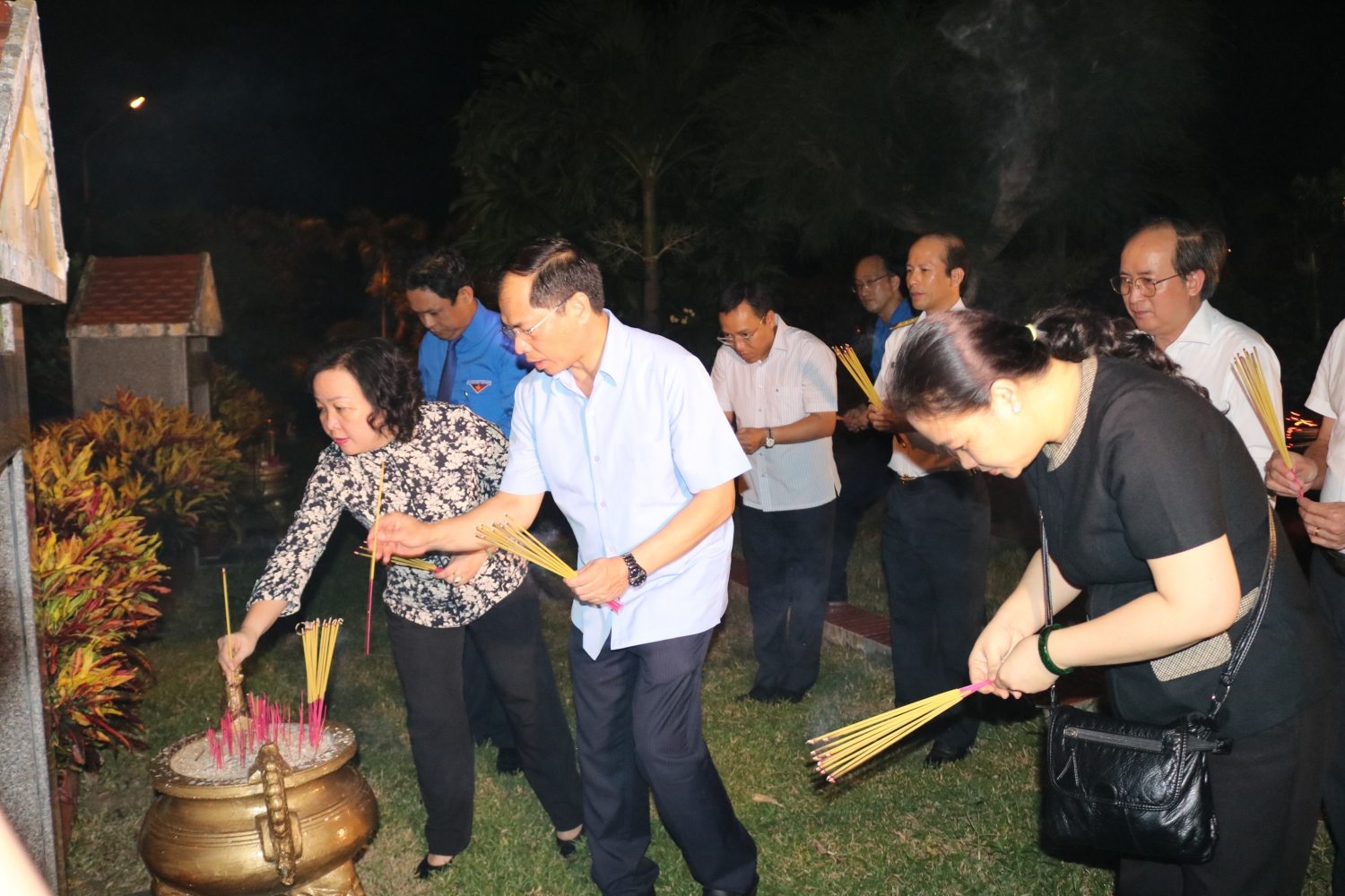 Đoàn viên, thanh niên thắp nến, hương tại phần mộ của các liệt sĩ.