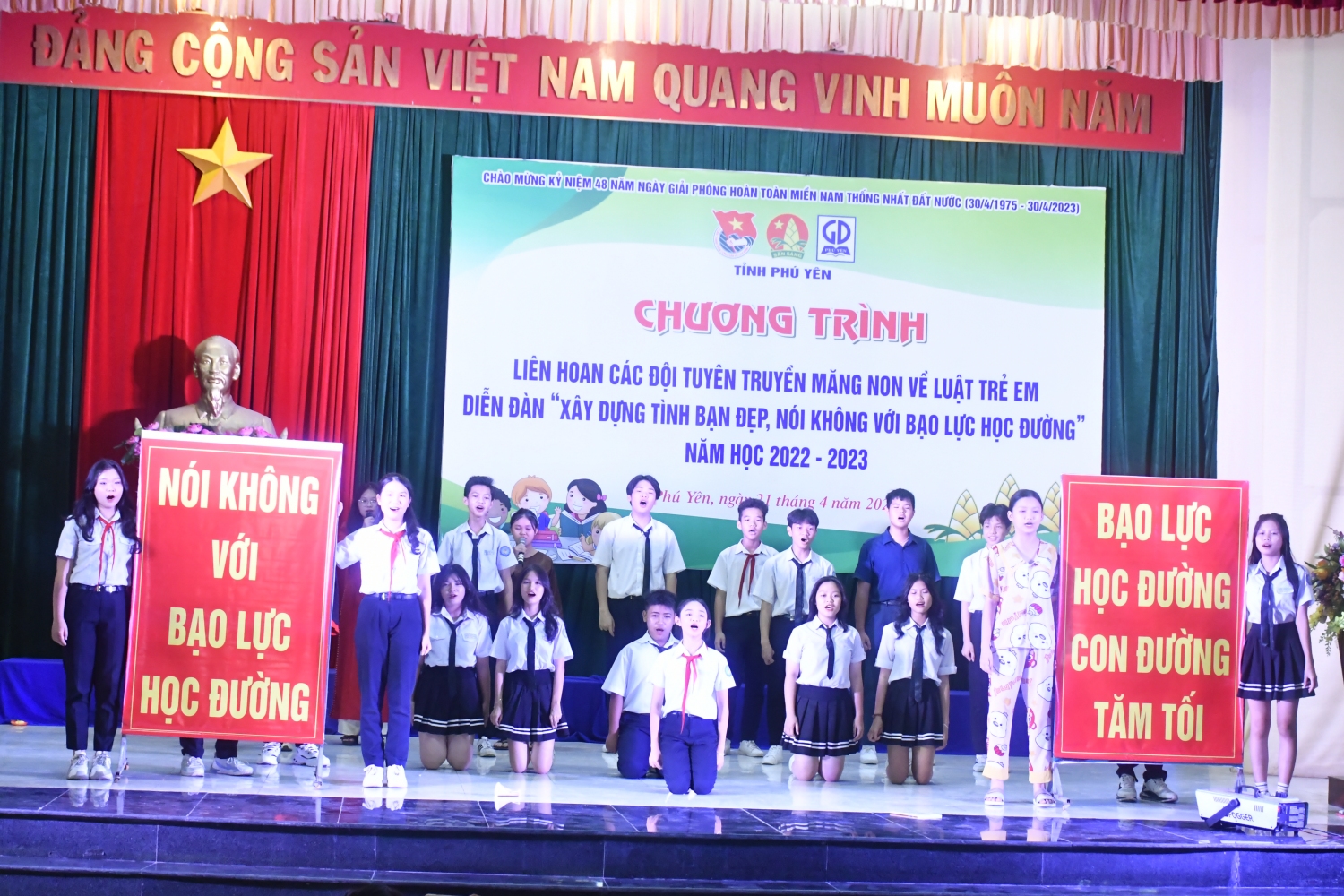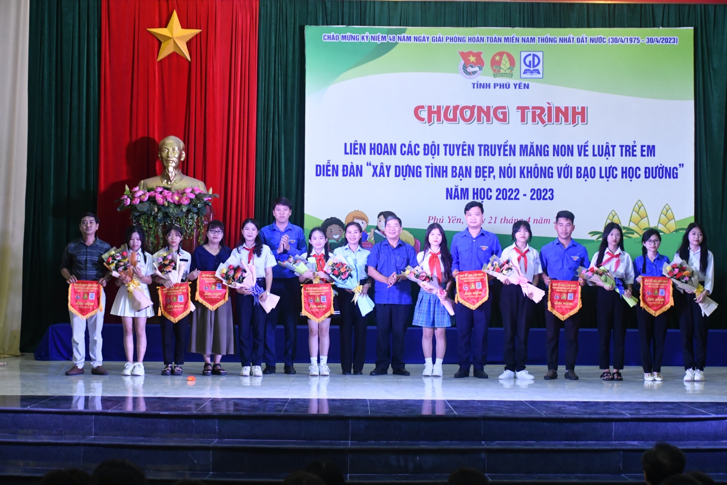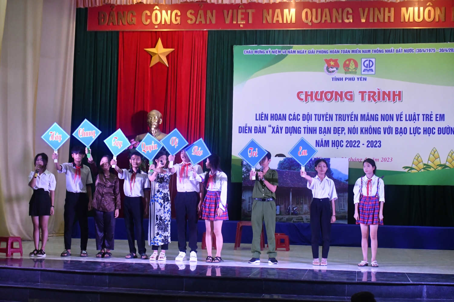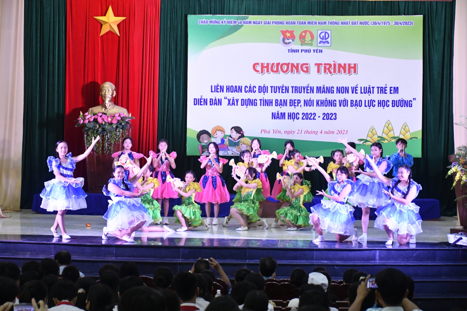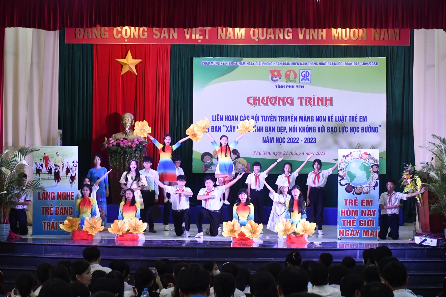 *Dịp này, Ban Tổ chức đã trao giải Chương trình Liên hoan các đội tuyên truyền măng non về Luật Trẻ em cho 9 đội đến từ Hội đồng Đội các huyện, thị, thành phố trong tỉnh. Các đội dự thi trình bày 01 tiểu phẩm tuyên truyền bằng hình thức sân khấu hoá theo các nội dung về Luật trẻ em hoặc bạo lực học đường, về tuyên truyền phòng, chống bạo lực học đường; lên án tệ nạn bạo lực học đường; những giải pháp giảm thiểu tình nạn bạo lực học đường; chia sẻ những câu chuyện đẹp về tình bạn, tình thầy trò, gương người tốt, việc tốt trong trường học góp phần xây dựng tình bạn đẹp, giảm thiểu bạo lực học đường; tuyên truyền các quy định của Luật Trẻ em năm 2016, các văn bản quy phạm pháp luật về công tác bảo vệ, chăm sóc, giáo dục trẻ em như: Nghị định số 56/2017/NĐ-CP ngày 09/5/2017 của Chính phủ về việc quy định chi tiết một số điều của Luật trẻ em; Chỉ thị số 23/CT-TTg ngày 26/5/2020 của Thủ tướng Chính phủ về việc tăng cường các giải pháp bảo đảm thực hiện quyền trẻ em; Nghị quyết 121/2020/QH14 ngày 19/6/2020 về tiếp tục tăng cường hiệu lực, hiệu quả thực hiện chính sách, pháp luật về phòng, chống xâm hại trẻ em,...