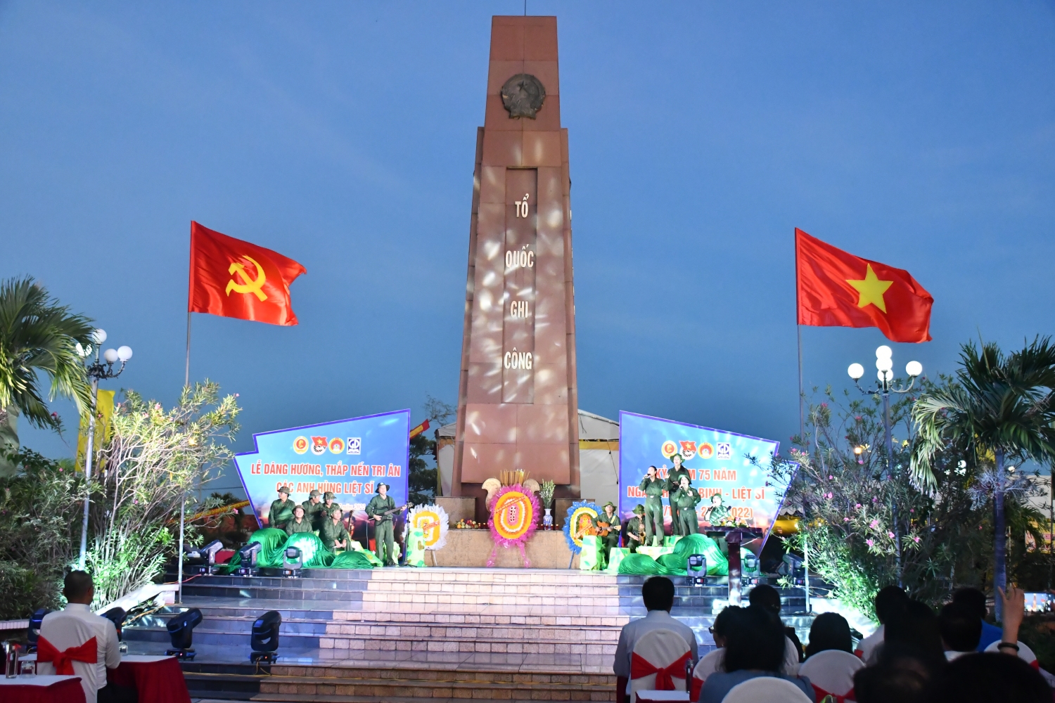 Mở đầu Lễ thắp nến tri ân, các đồng chí lãnh đạo, đại biểu, đoàn viên, thanh niên, hội viên và bà con Nhân dân đã dâng hoa, hương lên Đài tưởng niệm trung tâm; đồng thời, thắp sáng nến trên các phần mộ liệt sĩ. Tiếp theo đó, các ca sĩ, diễn viên đến từ Nhà hát Ca múa nhạc dân gian Sao Biển đã mang đến Chương trình nghệ thuật với không khí hào hùng nhưng cũng đầy xúc động. Đông đảo cán bộ, đoàn viên, thanh niên, hội viên tham gia thắp nến, hương và đặt hoa tươi trên gần 6.200 phần mộ, nơi yên nghỉ của những người con ưu tú của quê hương, đất nước, những người đã anh dũng hy sinh vì độc lập tự do của Tổ quốc và nghĩa vụ quốc tế cao cả.