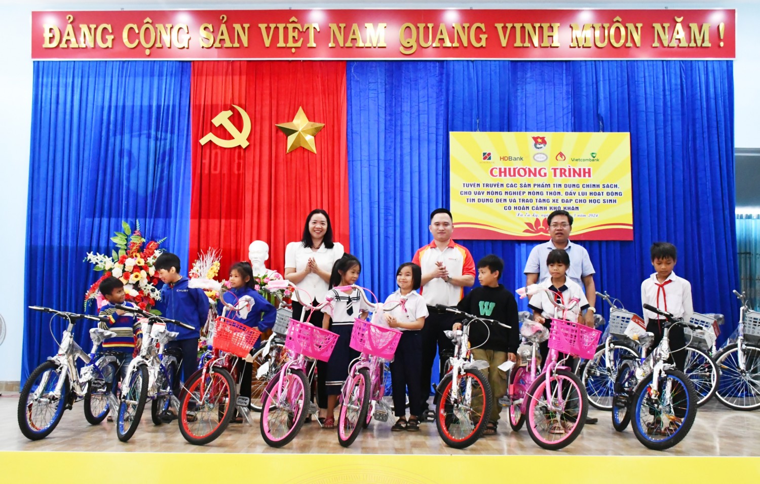 Trao tặng xe đạp cho các em học sinh có hoàn cảnh khó khăn.