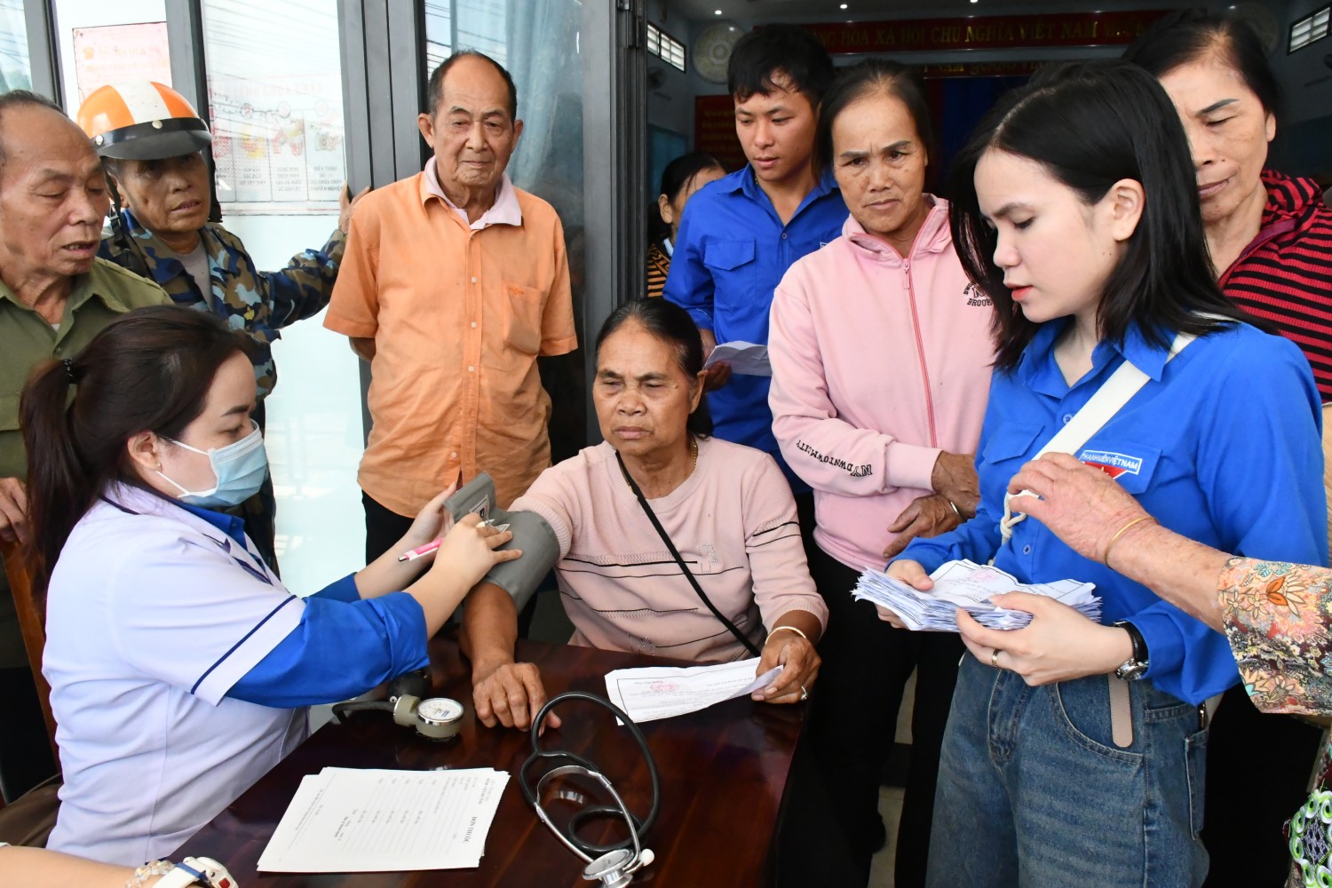 Đội ngũ y, bác sĩ khám bệnh, cấp phát thuốc miễn phí cho 100 người dân.