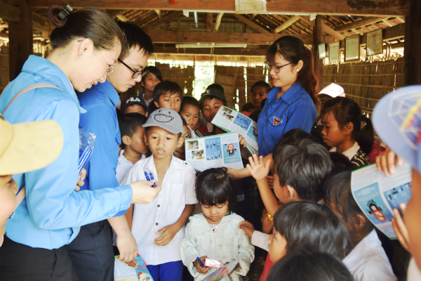 Tuyên truyền phòng, chống dịch bệnh cho các em thiếu nhi.