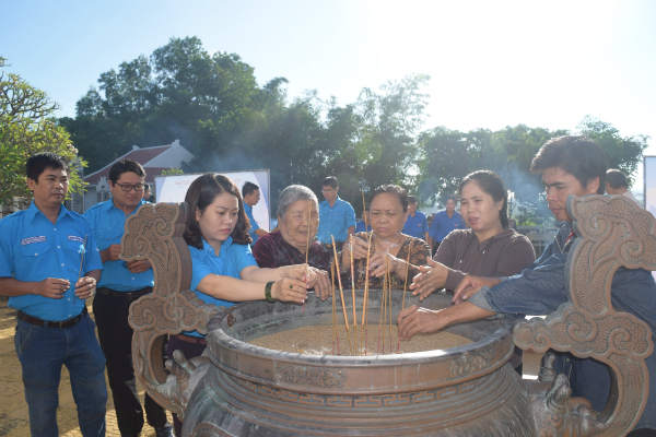 Hội viên, thanh niên và người dân thắp nến tri ân các anh hùng liệt sĩ tại Đài tưởng niệm Núi Nhạn.
