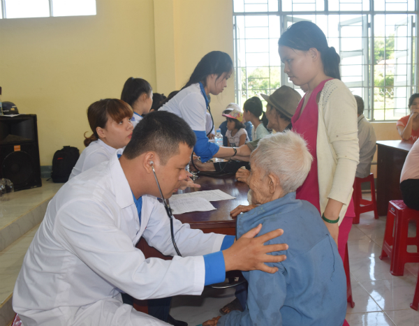 Hội viên, thanh niên, đội ngũ y, bác sỹ tham gia khám bệnh cho người dân