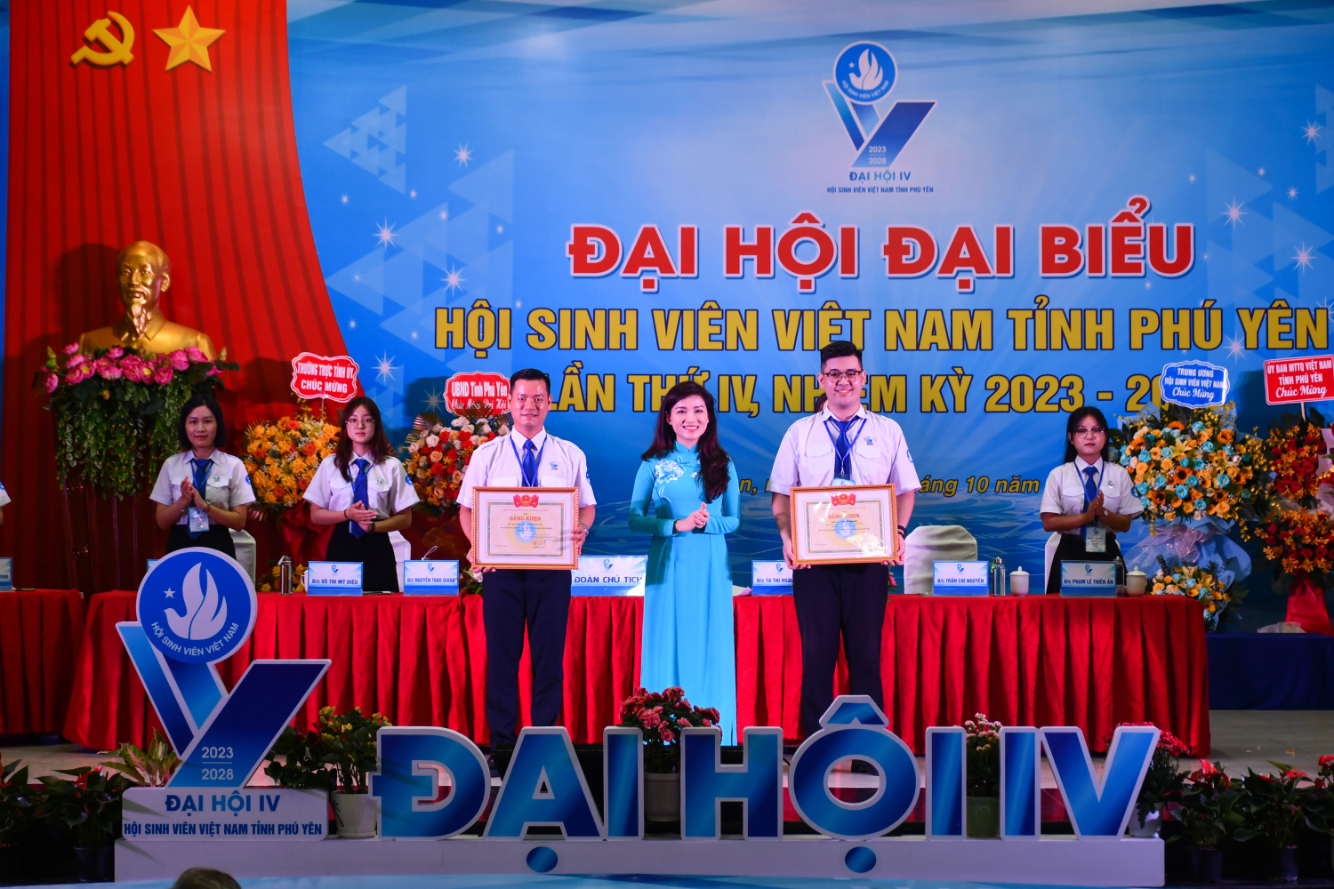 Đồng chí Hồ Hồng Nguyên, Ủy viên BTV Trung ương Đoàn, Trưởng Ban Thanh niên Trường học Trung ương Đoàn, Phó Chủ tịch Thường trực Trung ương Hội Sinh viên Việt Nam trao bằng khen cho Ban Chấp hành Hội Sinh viên Việt Nam tỉnh Phú Yên và cá nhân có thành tích xuất sắc trong nhiệm kỳ qua.