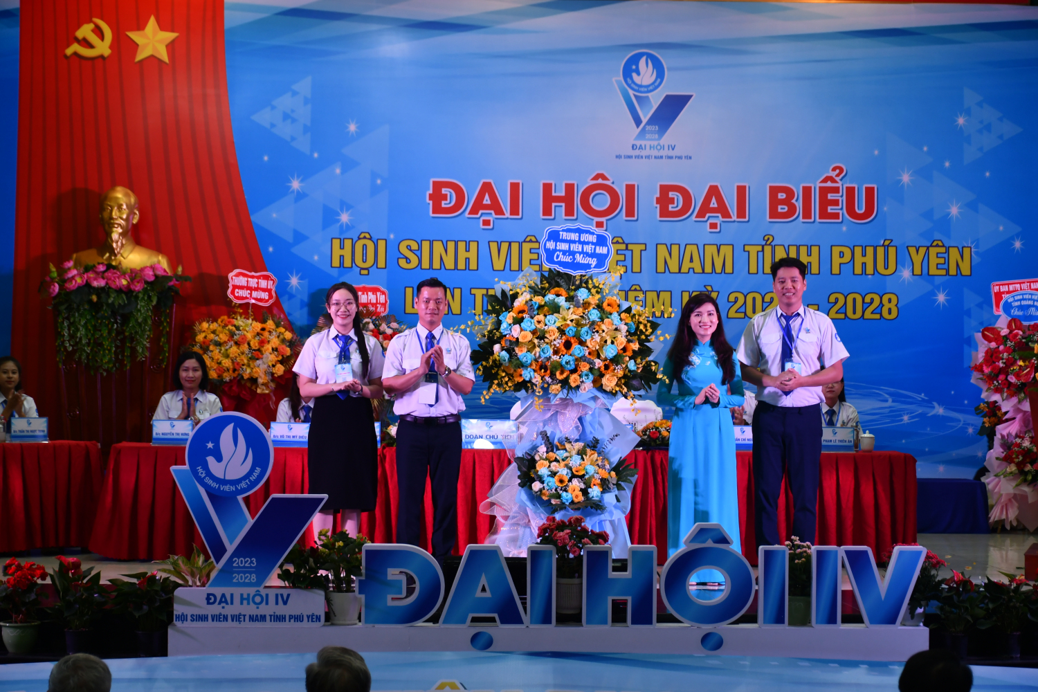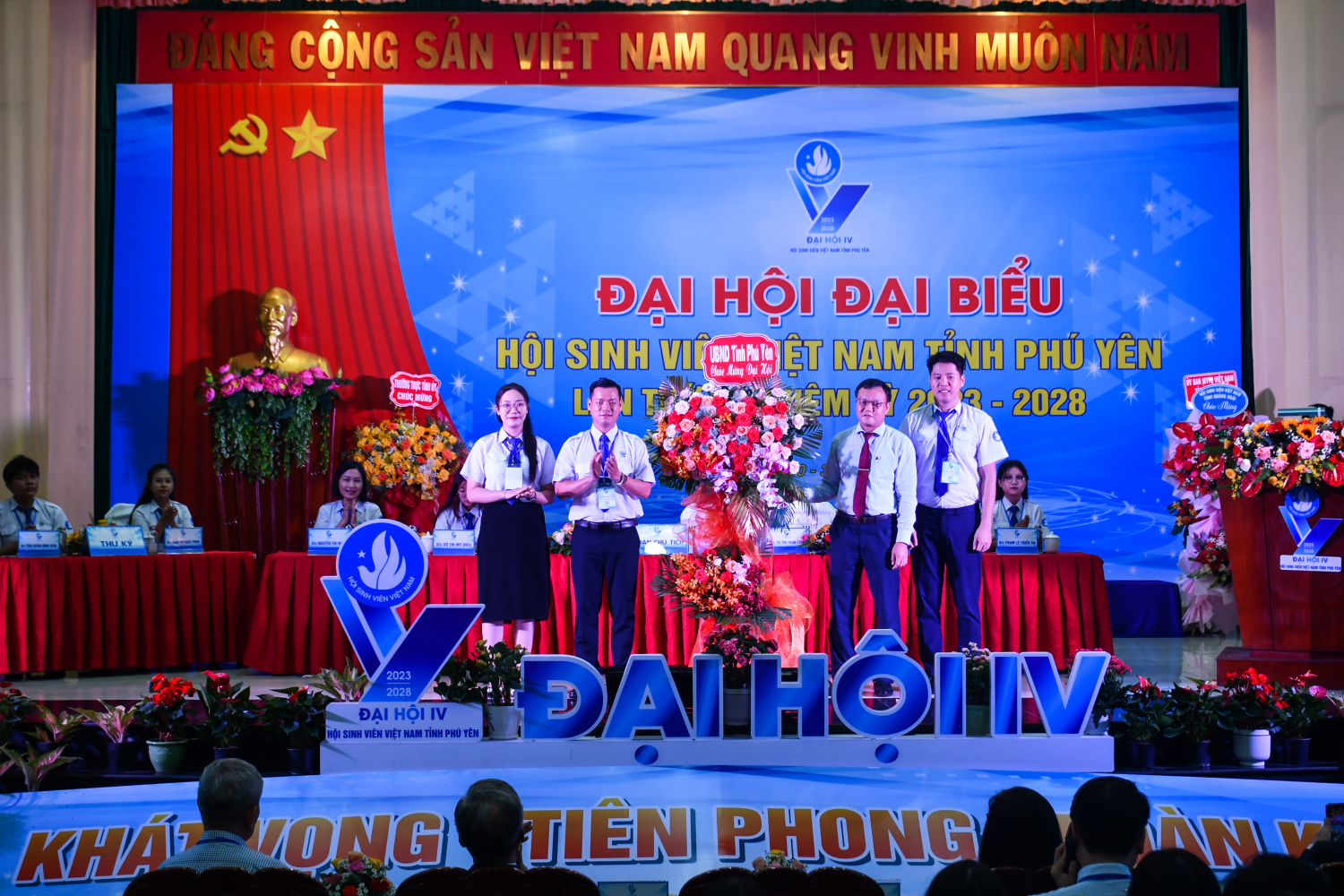Phó Chủ tịch Thường trực Trung ương Hội Sinh viên Việt Nam và các đồng chí lãnh đạo tỉnh, Thường trực Tỉnh Đoàn tặng hoa chức mừng Ban Chấp hành Hội Sinh viên Việt Nam tỉnh Phú Yên khóa IV.