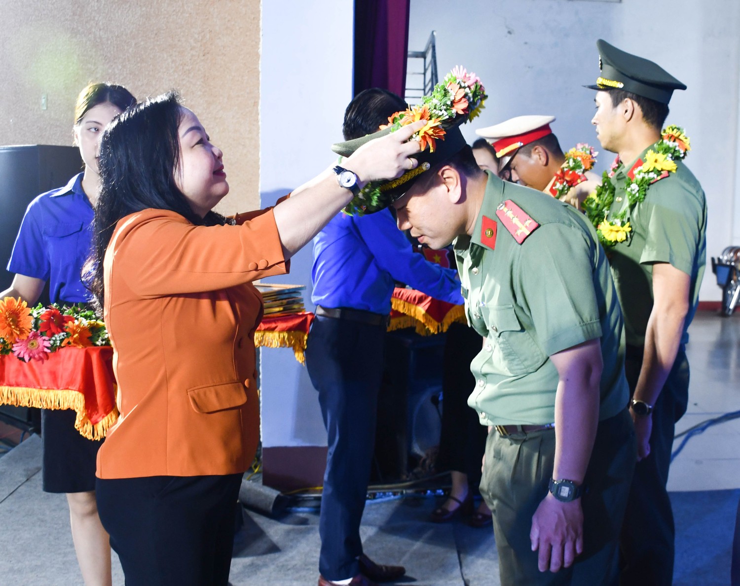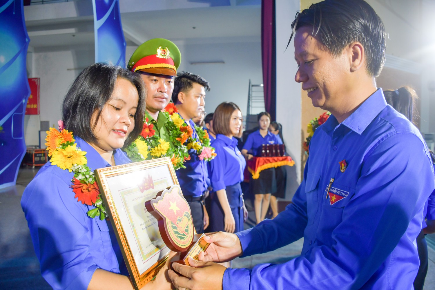Đồng chí Cao Thị Hòa An, Phó Bí thư Thường trực Tỉnh ủy, Chủ tịch HĐND tỉnh và Thường trực Tỉnh Đoàn tặng bằng khen cho cán bộ Đoàn tiêu biểu.