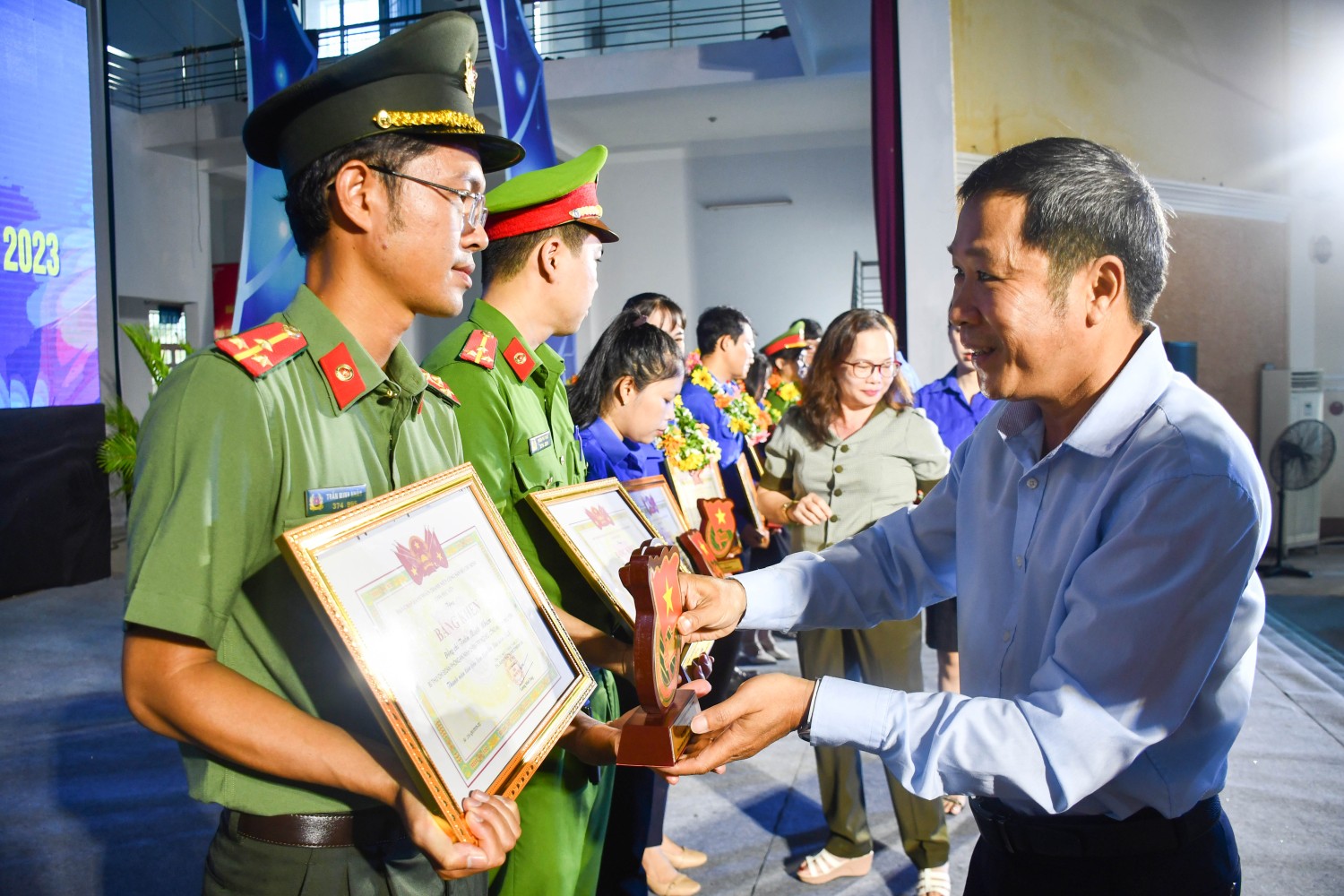 Lãnh đạo Ban Tuyên giáo Tỉnh ủy, Dân vận Tỉnh ủy và Thường trực Tỉnh Đoàn trao danh hiệu thanh niên tiên tiến làm theo lời Bác năm 2023 cho các cá nhân.