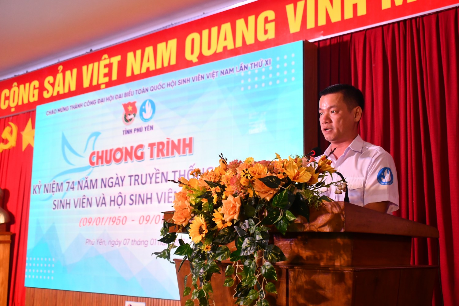 Đồng chí Võ Duy Kha, Phó Bí thư Tỉnh Đoàn, Chủ tịch Hội Sinh viên Việt Nam tỉnh đọc diễn văn ôn lại kỷ niệm 74 năm của Ngày truyền thống học sinh, sinh viên và Hội sinh viên Việt Nam.