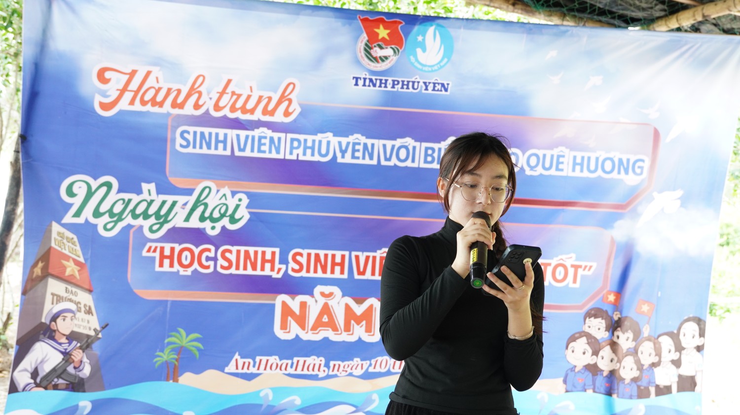 Đồng chí Võ Thị Mỹ Diệu - Phó Chủ tịch Hội Sinh viên Trường Đại học Phú Yên báo cáo tham luận giải pháp phát triển phong trào Sinh viên 5 tốt.