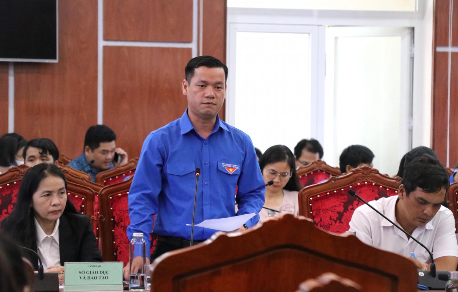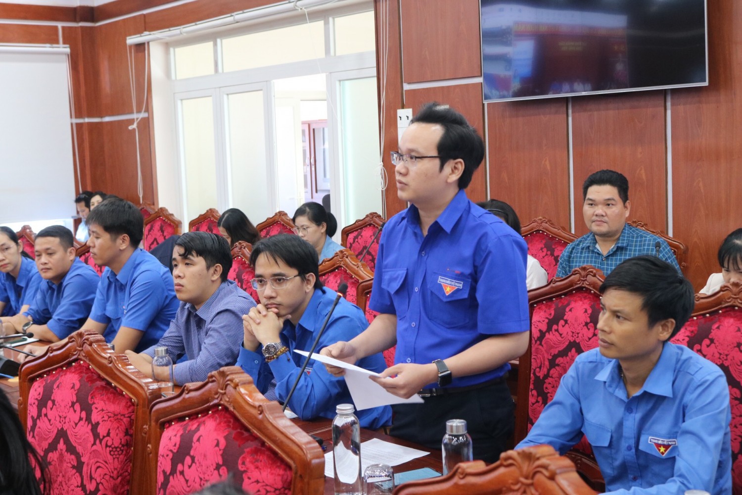 Phó Bí thư Tỉnh Đoàn Võ Duy Kha trả lời các câu hỏi của thanh niên có ý kiến tại hội nghị.
