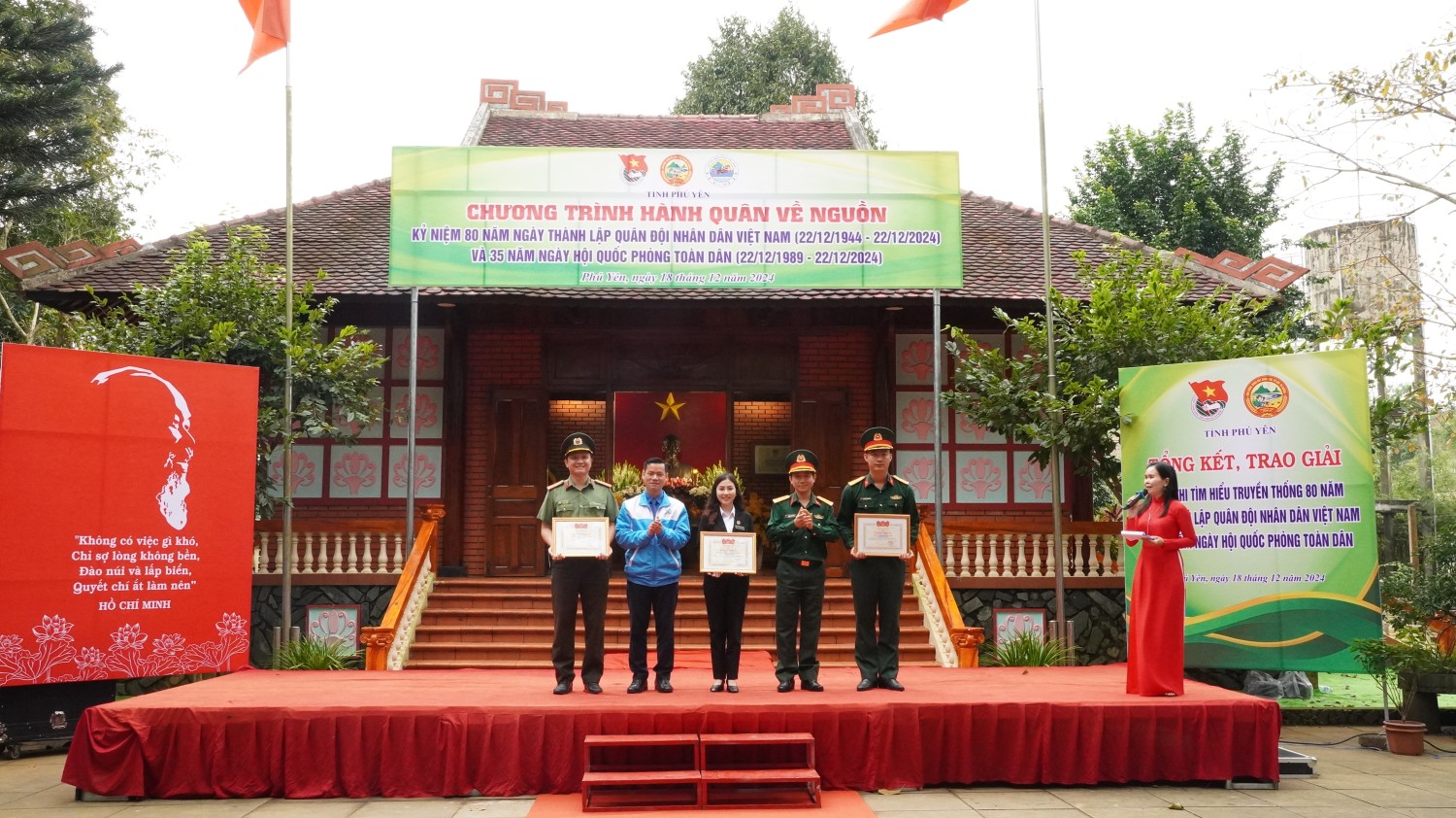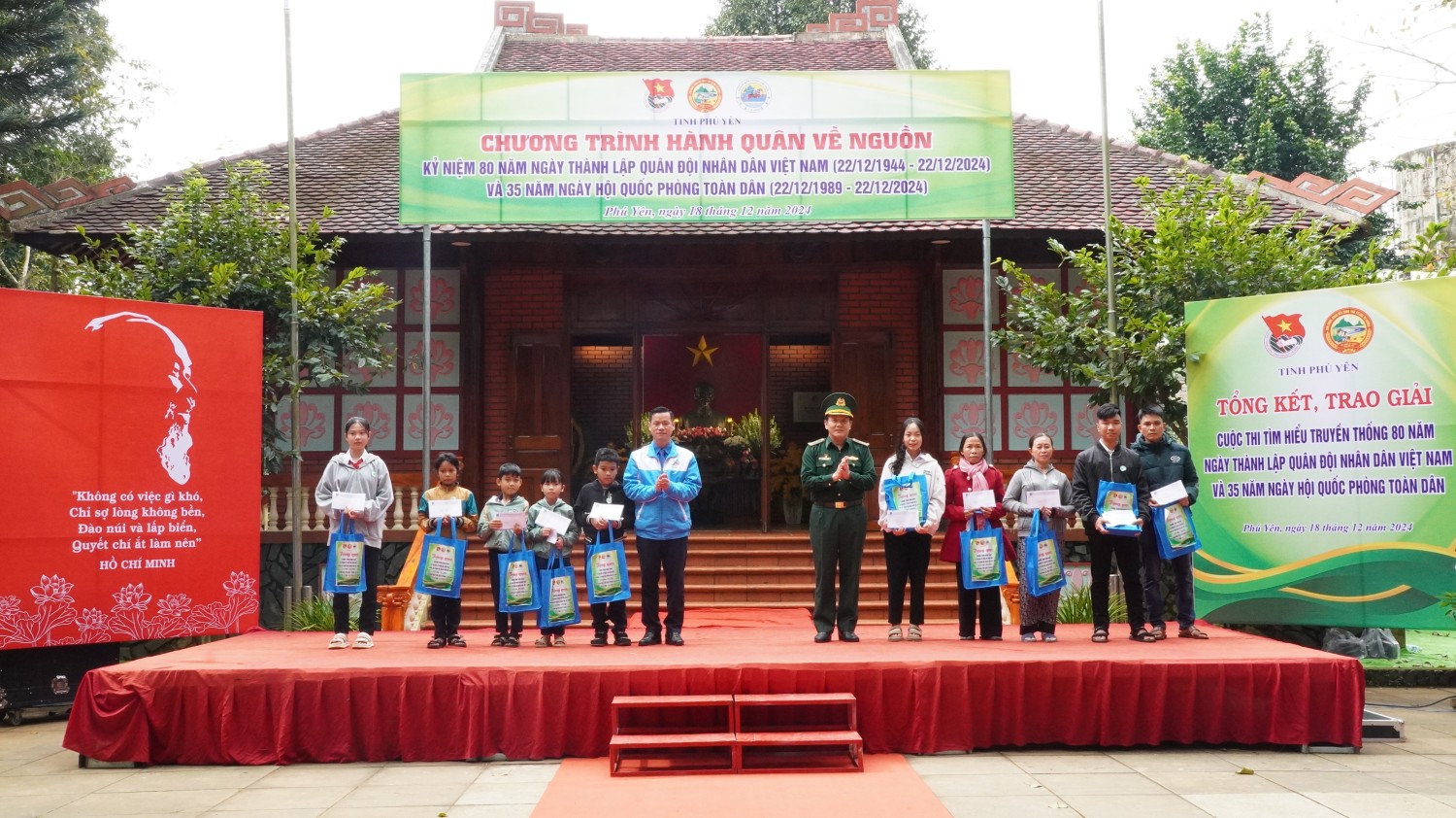 Sáng ngày 18/12, tại khu di tích Nhà thờ Bác Hồ (xã Sơn Định, huyện Sơn Hòa), Ban Thường vụ Tỉnh Đoàn phối hợp với Bộ Chỉ huy Quân sự tỉnh, Bộ Chỉ huy Bộ đội Biên phòng tỉnh long trọng tổ chức chương trình Hành quân về nguồn; tổng kết, trao giải Cuộc thi tìm hiểu truyền thống 80 năm Ngày thành lập Quân đội nhân dân Việt Nam (22/12/1944 - 22/12/2024) và 35 năm Ngày hội Quốc phòng toàn dân (22/12/1989 - 22/12/2024). Tham dự chương trình có lãnh đạo MTTQ tỉnh, các ban xây dựng Đảng Tỉnh ủy, các ban ngành, đoàn thể tỉnh và hơn 200 cán bộ, chiến sĩ, đoàn viên thanh niên, Nhân dân trong tỉnh tham dự.